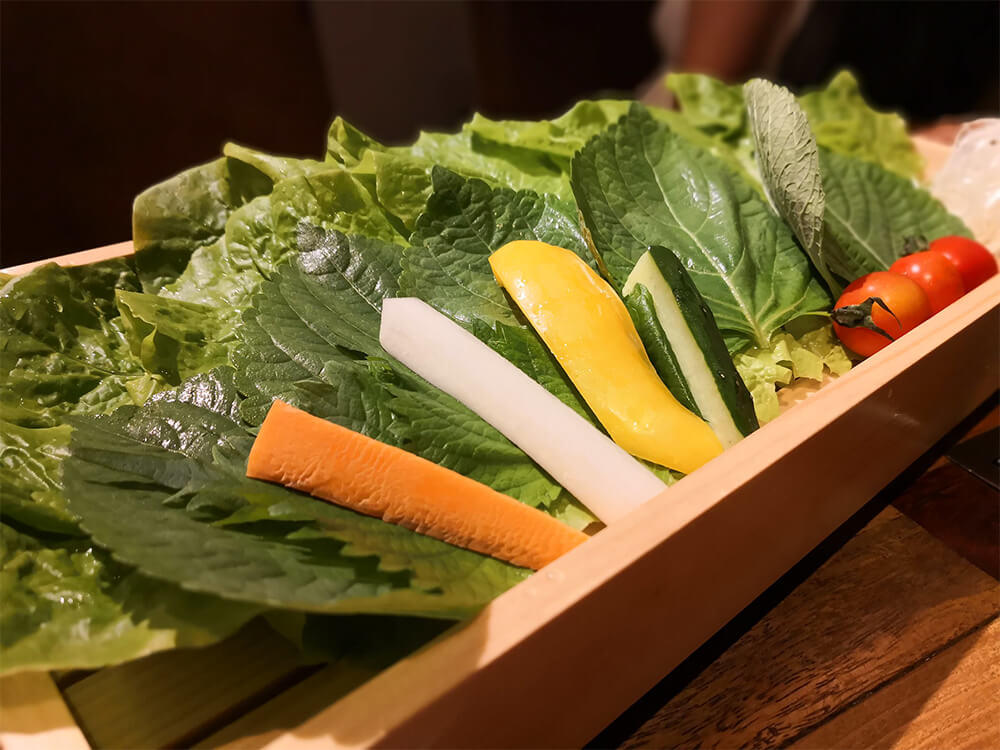 フレッシュな野菜はピカピカしており、お肉をさらに引き立ててくれます。