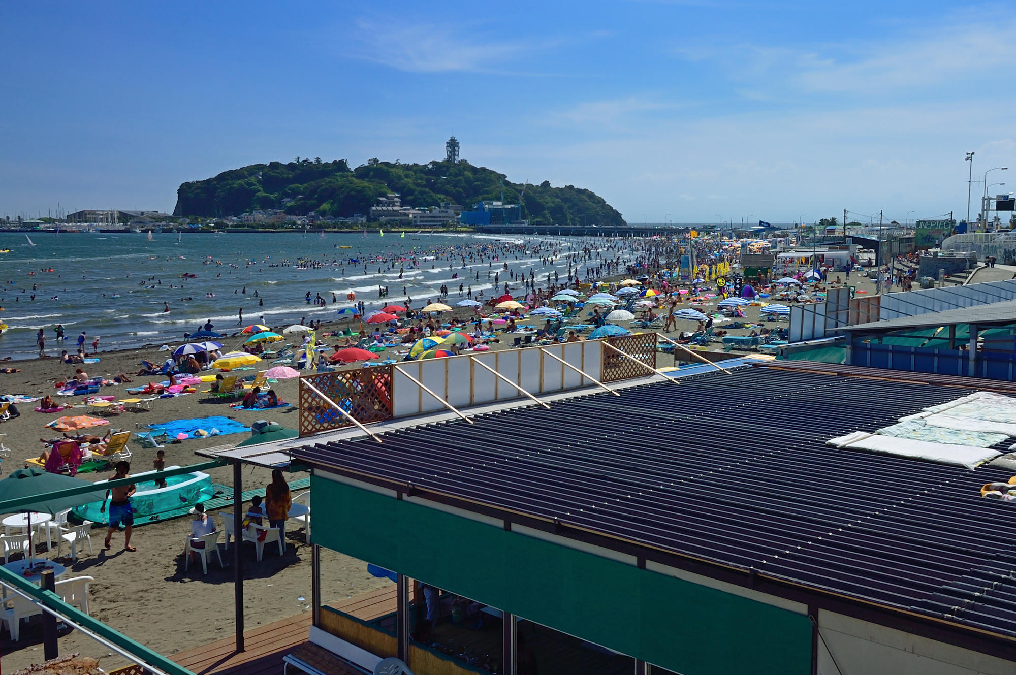 江ノ島の海は東浜と西浜に分かれますが、夏の間にはどちらも素敵な海の家がたくさんあります。