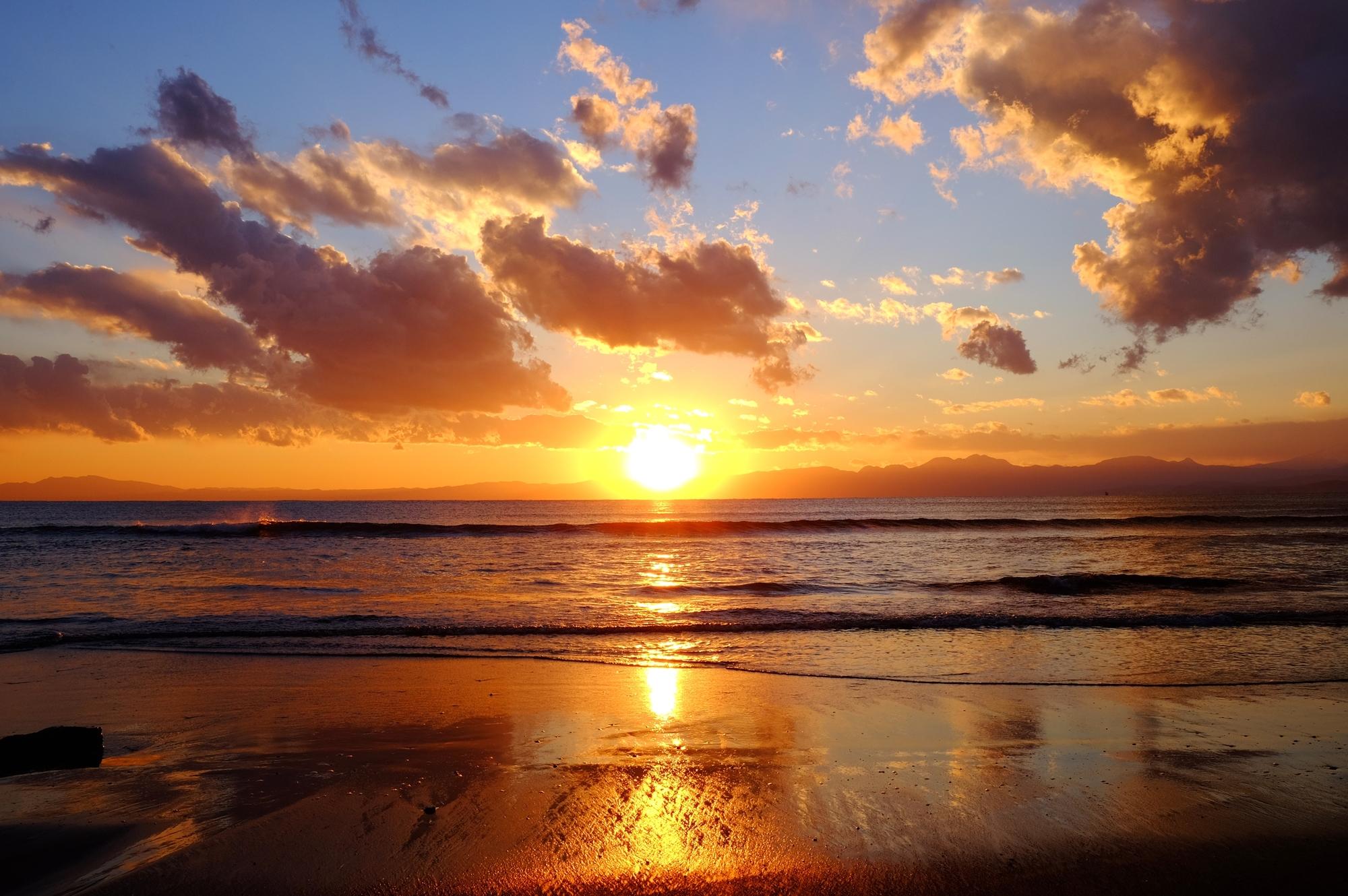 日中は片瀬海岸から富士山の景観が楽しめて、夕暮れには西浜から綺麗な夕日が眺められます。