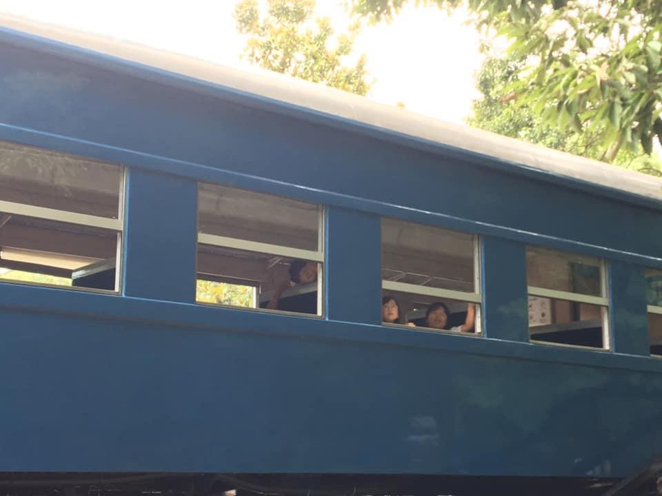 サマーミュージアムでは上の写真のように森の中で披露いたしましたが、今回は電車の中とのことですので、電車にまつわるお話を考えました。