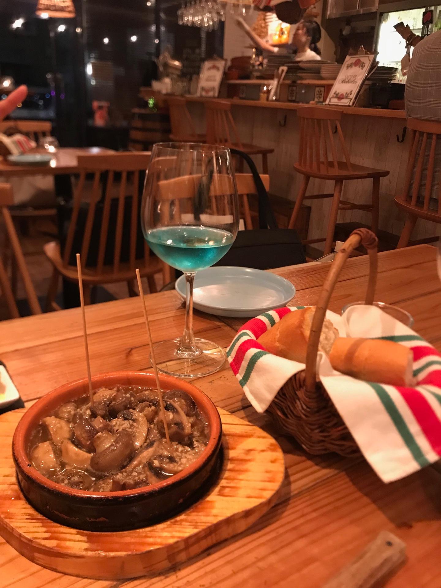 綺麗なブルーのワインと出会ったのは、下北沢の裏通りにあるスペインバル。