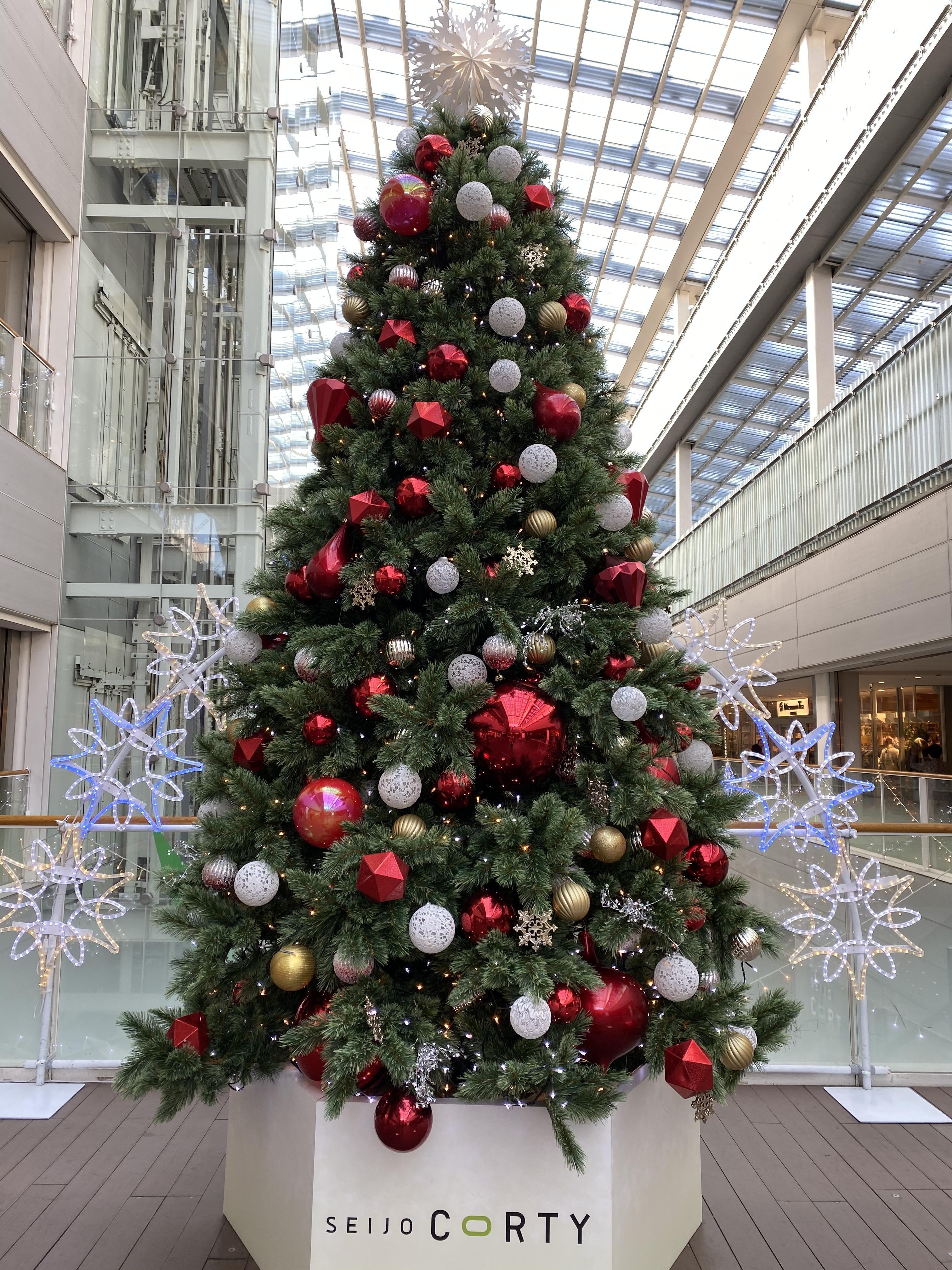 成城学園前の駅ビル、コルティの二階にディスプレイしてあるクリスマスツリーも毎年うっとりします、昼間のツリーも良いのですが夜ライトアップされたツリーも雰囲気を変えてうっとりします。