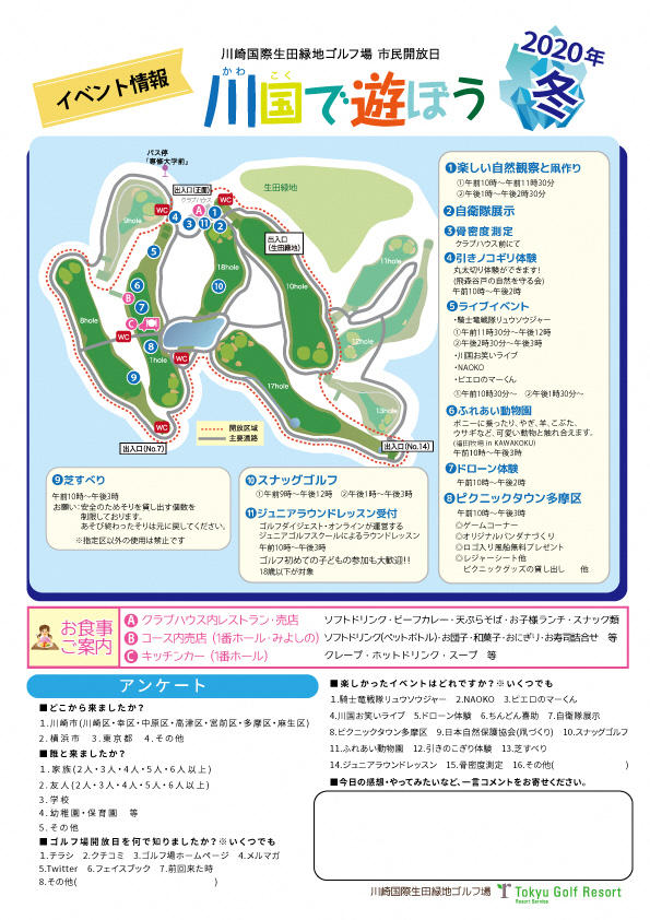 2月2日(日)9時から4時まで、生田緑地のゴルフ場で無料開放デーが開催されます。