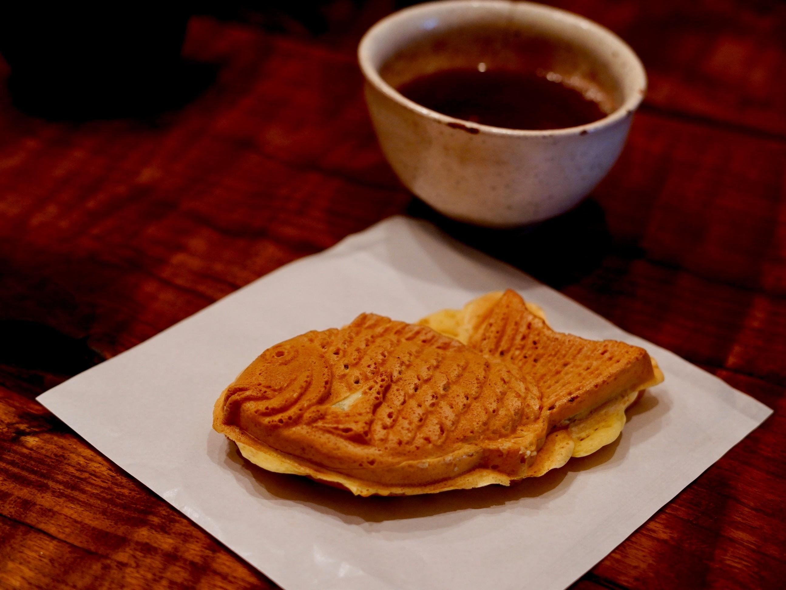 お皿などはないのですが、たい焼きを購入し、靴を脱いで畳の上に足を伸ばし、焼きたてのたい焼きを頬張ることがきるってちょっと嬉しい。