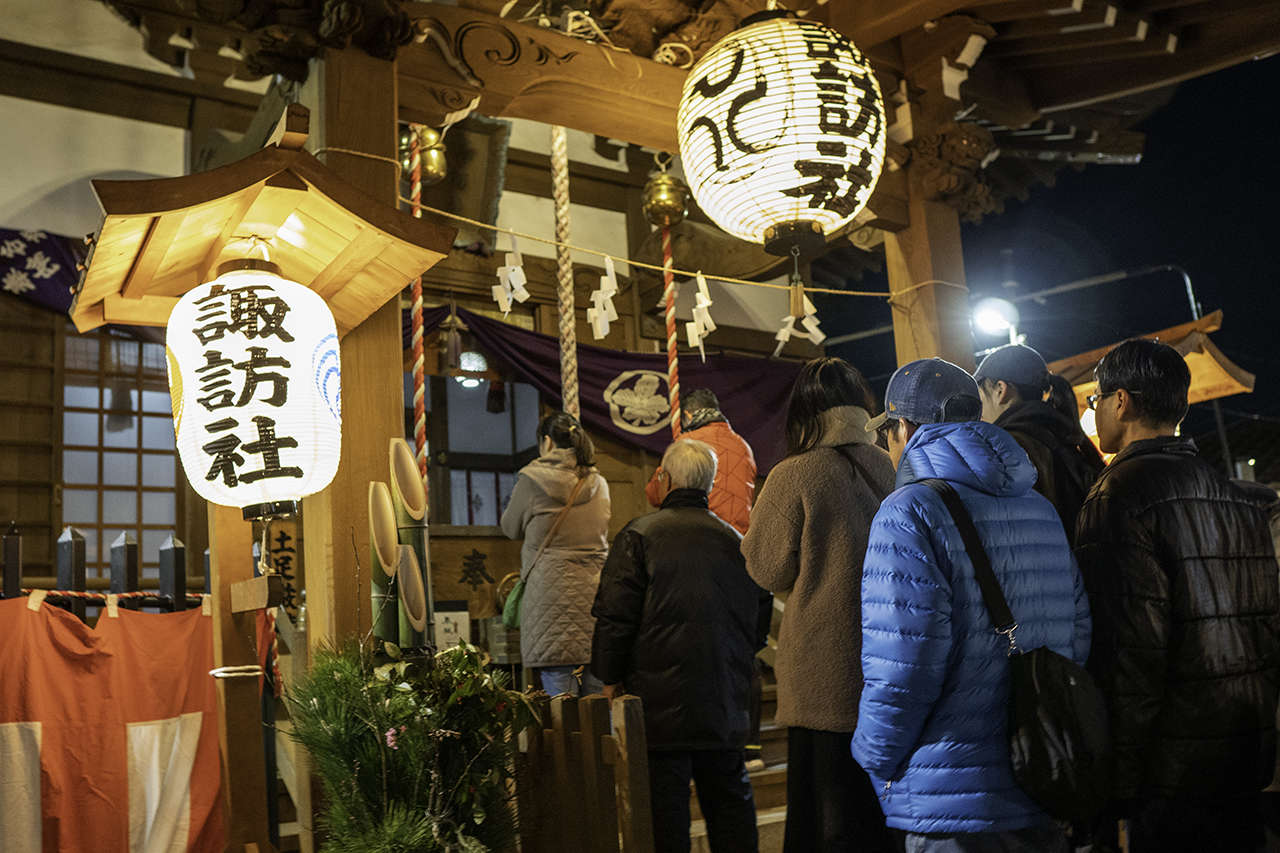 夜には、諏訪社境内で余興が開催され大勢が集まる。