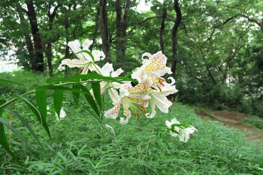 新百合ヶ丘駅北口より新百合山手通り沿いの徒歩約10分のところにある万福寺さとやま公園の一角さとやまの杜1に、麻生ヤマユリ植栽普及会の皆さんが植栽し育てている麻生の花ヤマユリがあります。