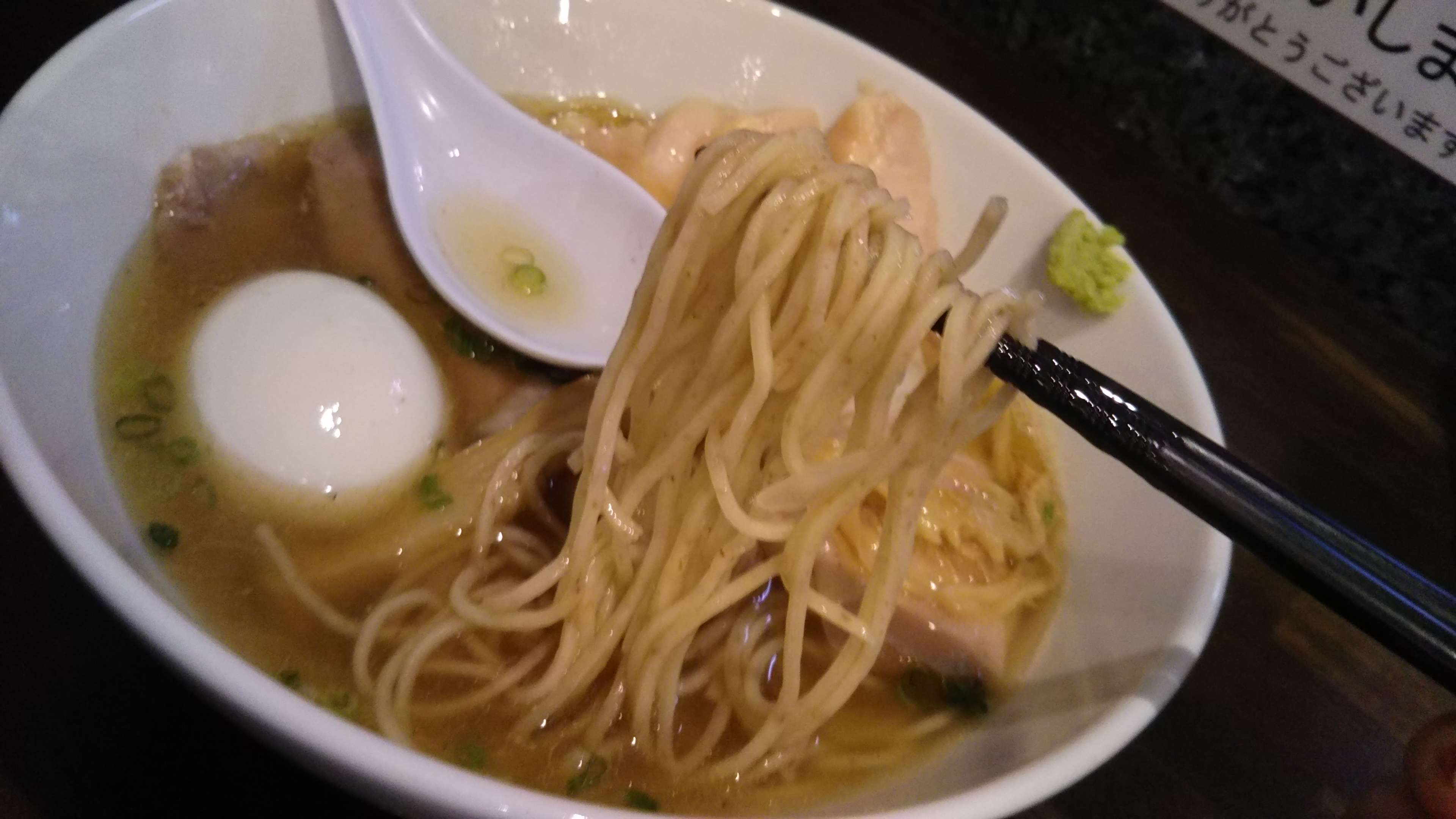 スープの味がとても味わい深くてあっさり系塩味で美味しく細いストレート麺は、ツルツルとのど越しも良い感じ。