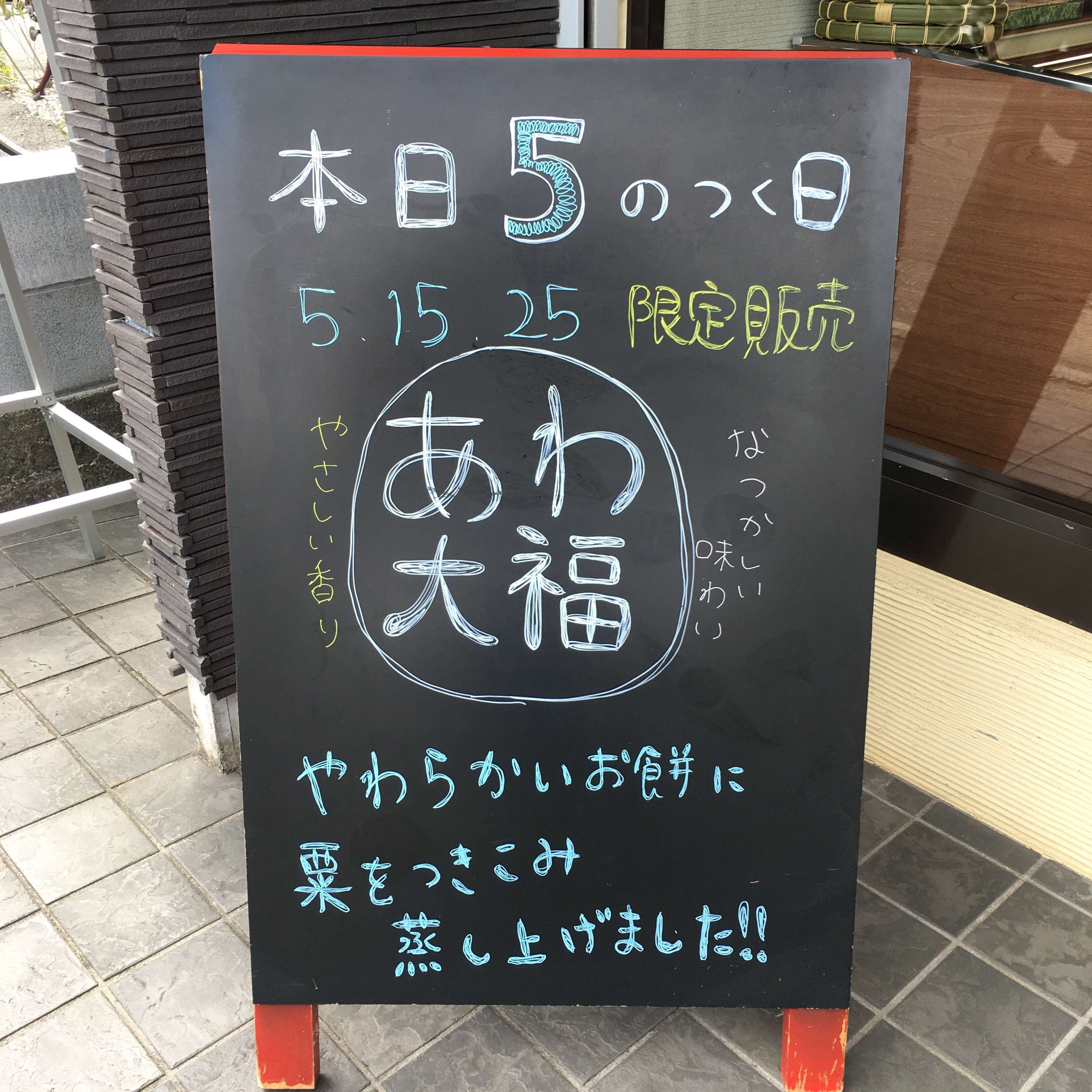 普段はみたらし団子や水ようかんを買いますが、5のつく日は限定商品「あわ大福」をお目当てにお店に行きます。