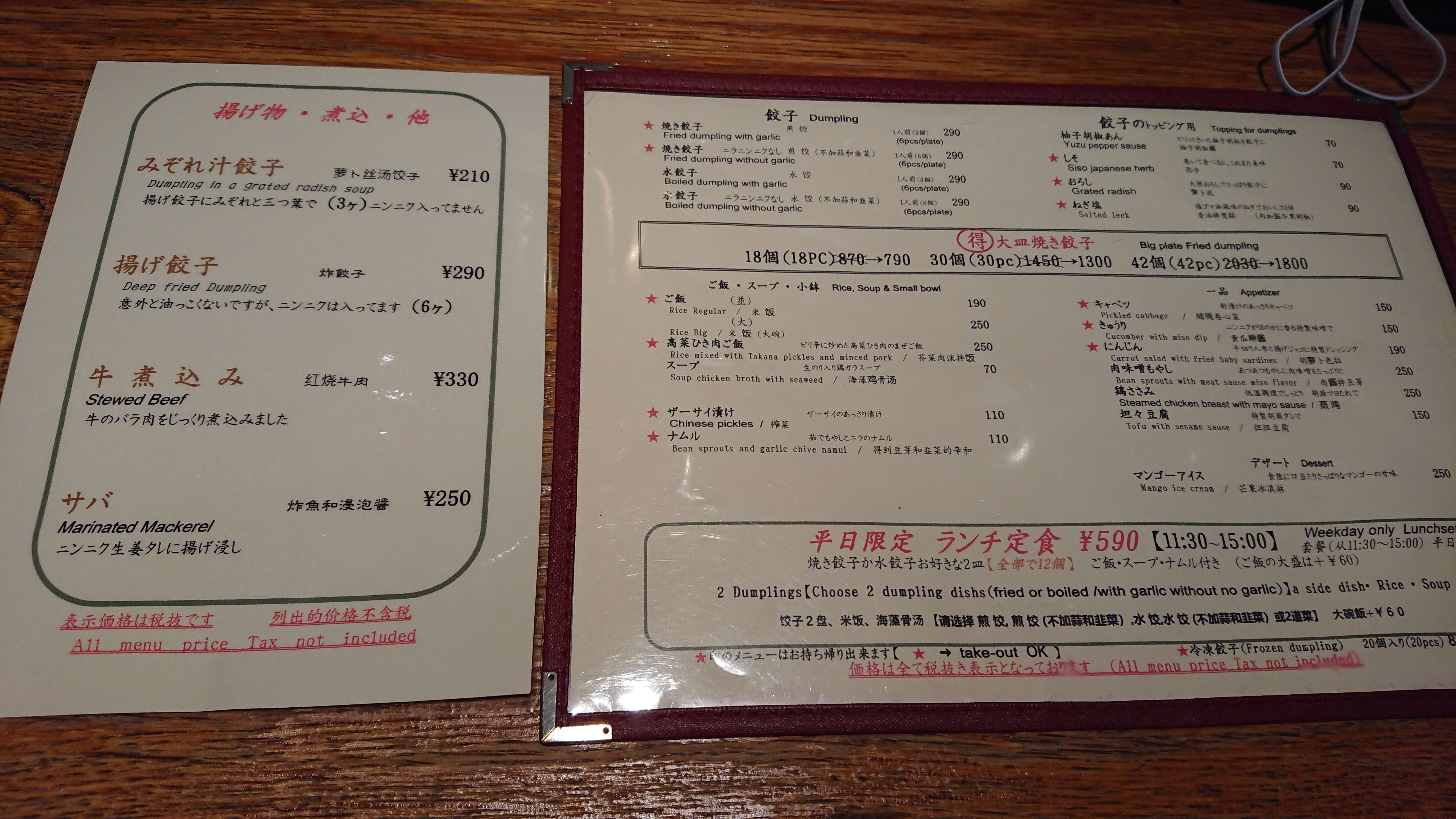 ニンニク有り無しが選べる焼き餃子と水餃子、ちょっとした一品料理も楽しめる餃子屋さん。