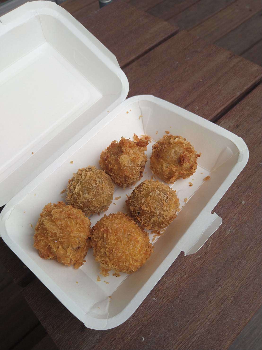 コロッケは、じゃがいも、さつまいも、メンチの3種類があり、いずれも、まん丸の形で一口サイズと可愛らしく、店内での飲食の他、1個からテイクアウトをすることができます。