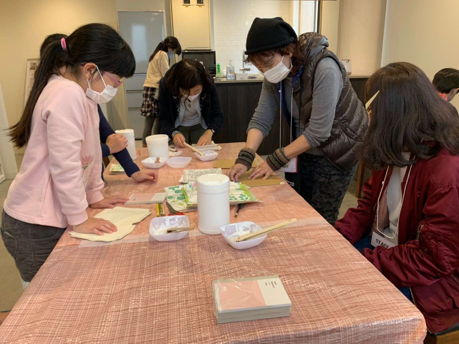 こどもしんぶん部では制作の展示と午後にCAFÉ & SPACE L.D.K.にて壁紙で作るミニノート作りワークショップを行いました。