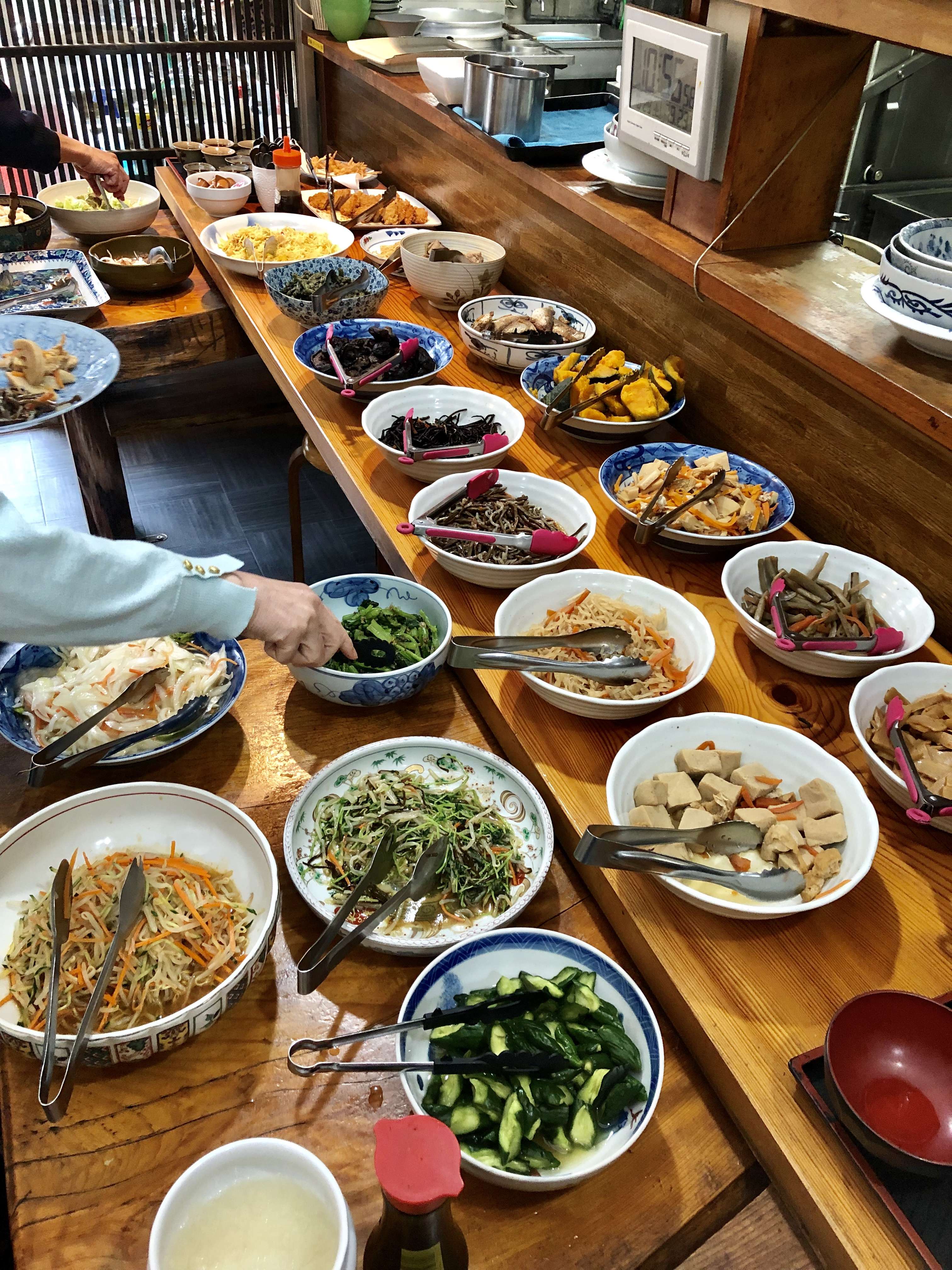 お蕎麦を注文すると、なんとお惣菜を食べたいだけ食べられる!