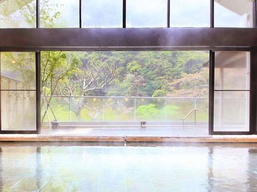 窓の外には情緒ある風景が広がり、湯船に四季の彩りを映します。