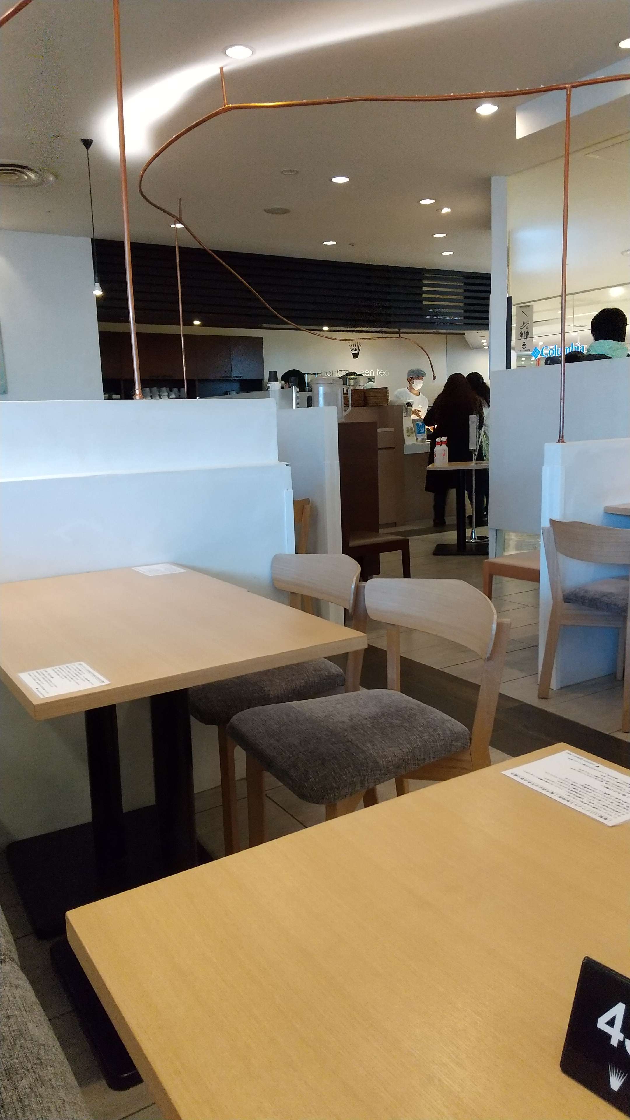 ショッピングモール内とは思えない広さの店内は、ショッピングの合間にゆっくりするのにぴったりの空間です。