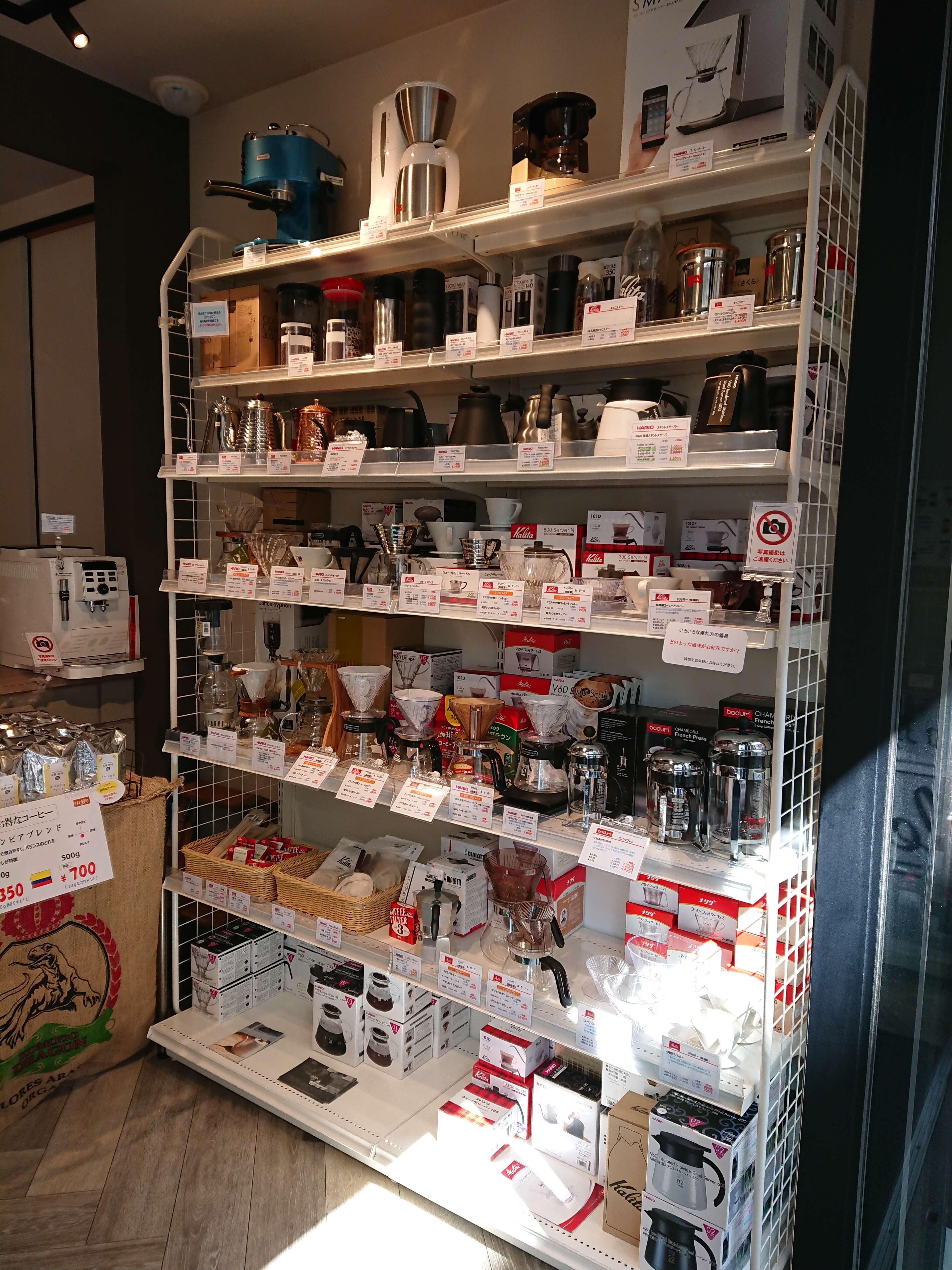 いろいろな器具が揃っていて、本格的な珈琲に挑戦してみたくなります。