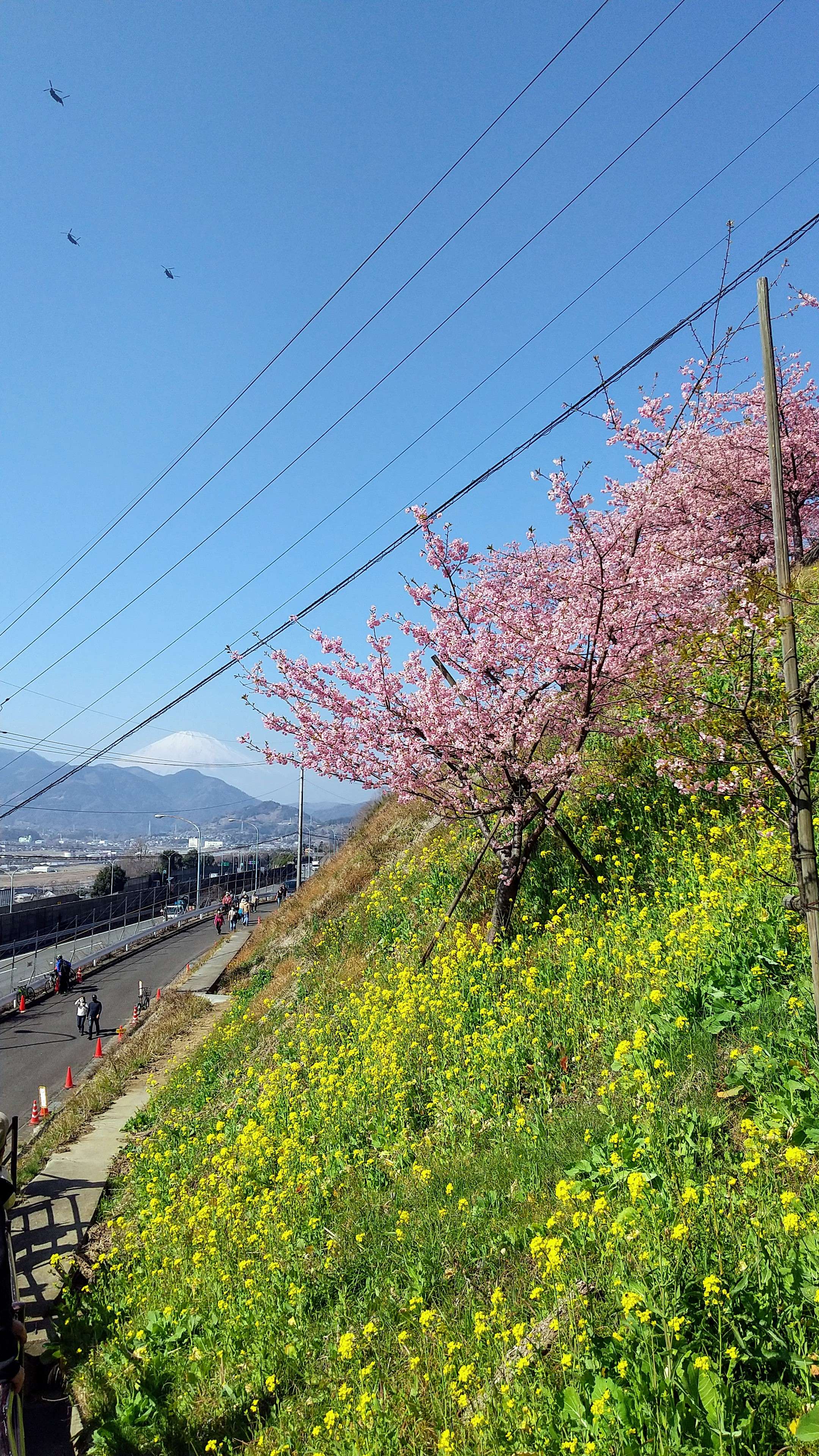 河津桜の合間にみえる富士山をみなさんこぞって写真撮影していました。