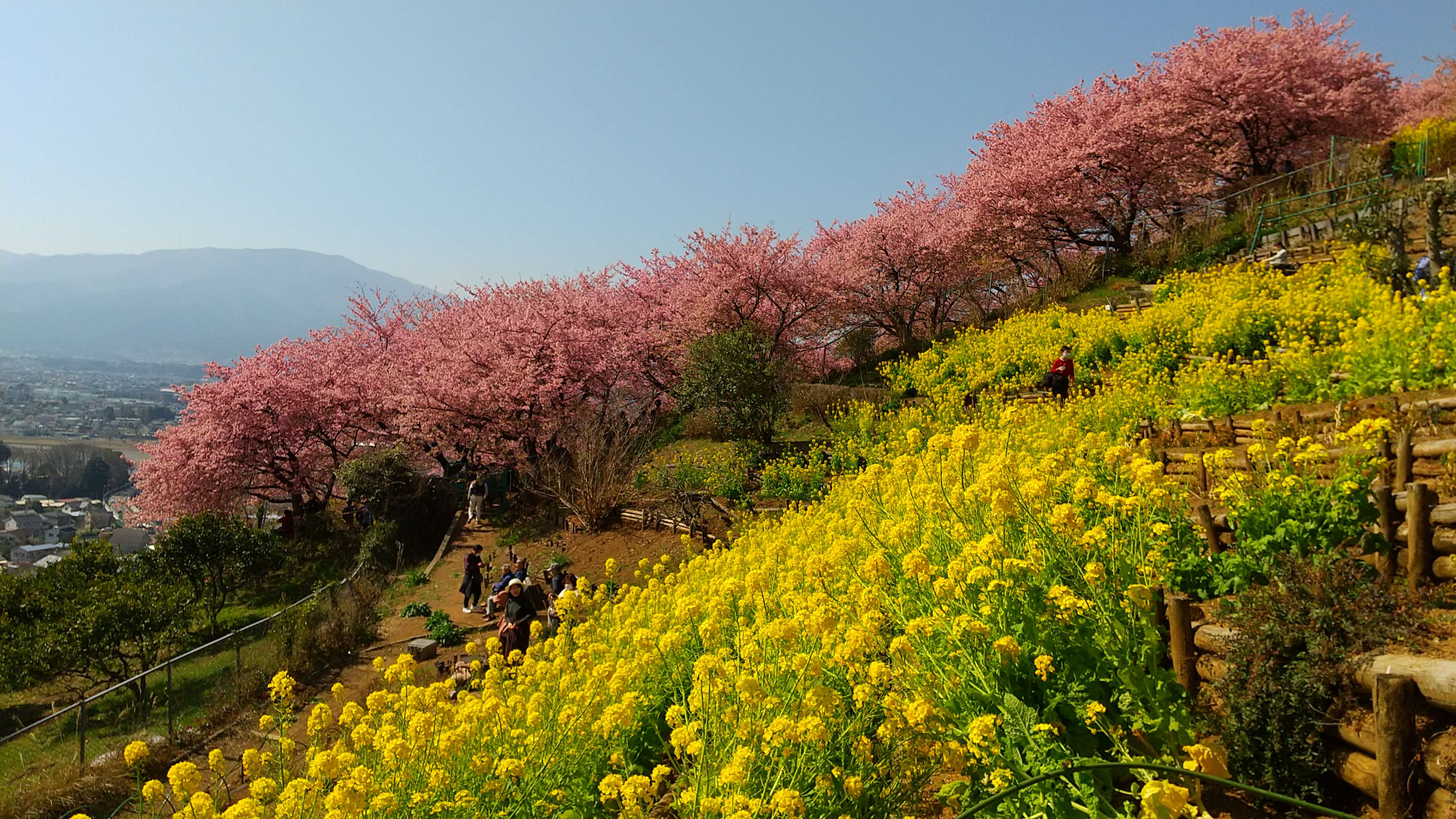 ハーブガーデンに到着すると満開の河津桜と菜の花がお出迎え。