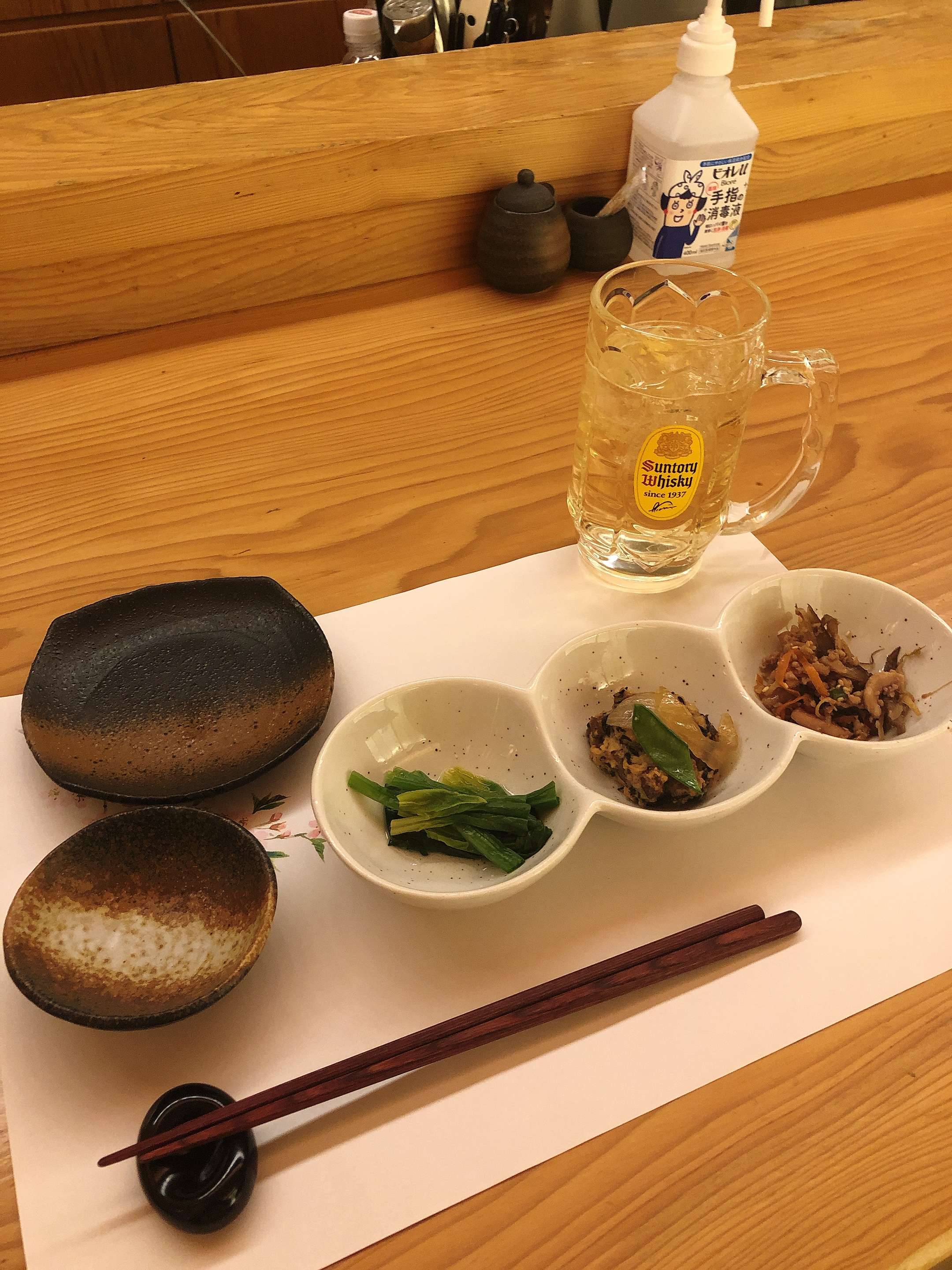 丁寧に作られているのが分かるお通しをいただきながら、お酒と肴を選びます。