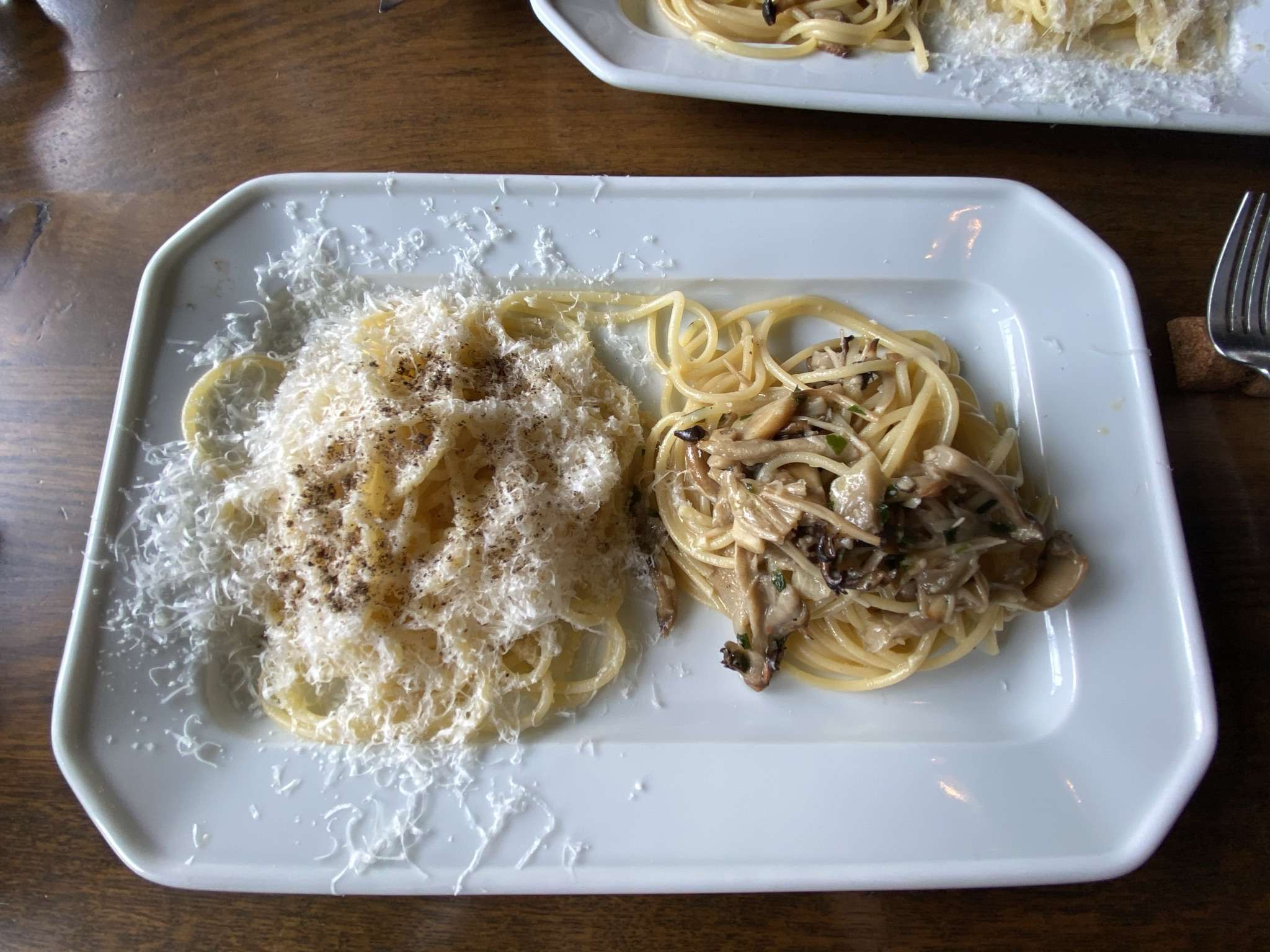 チーズのパスタもキノコのパスタも美味しくいただきました。