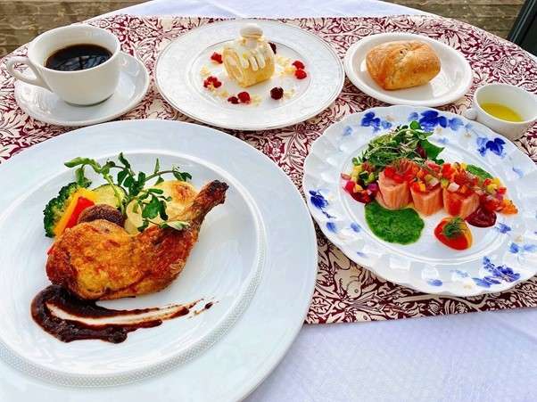前菜やお肉料理などを堪能できるランチコース料理や、比較的リーズナブルな価格でフレンチを楽しめるランチプレートなどが用意されている他、朝食にピッタリのオムレツやヨーグルトなどを揃えたモーニング、スイーツなどもあります。