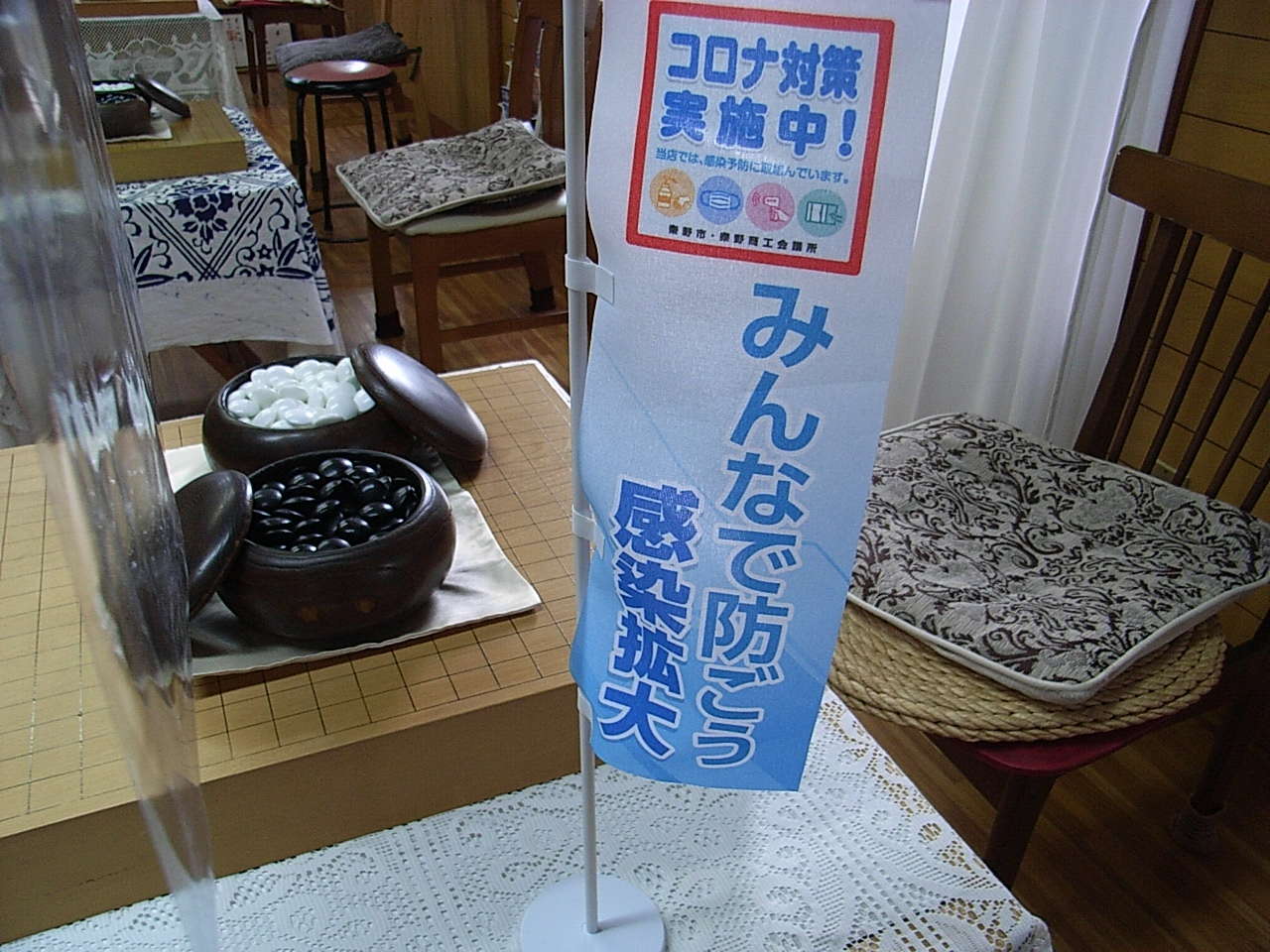 以前は厚い「四寸盤」を揃え昔ながらの碁会所の雰囲気でしたが、「コロナ休業」(1月~3月)をきっかけに4月から新装オープン。