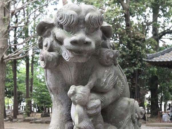 世田谷八幡宮には親子の狛犬がおり、無邪気な子供と子供を守る親狛犬の様子が伺えます。