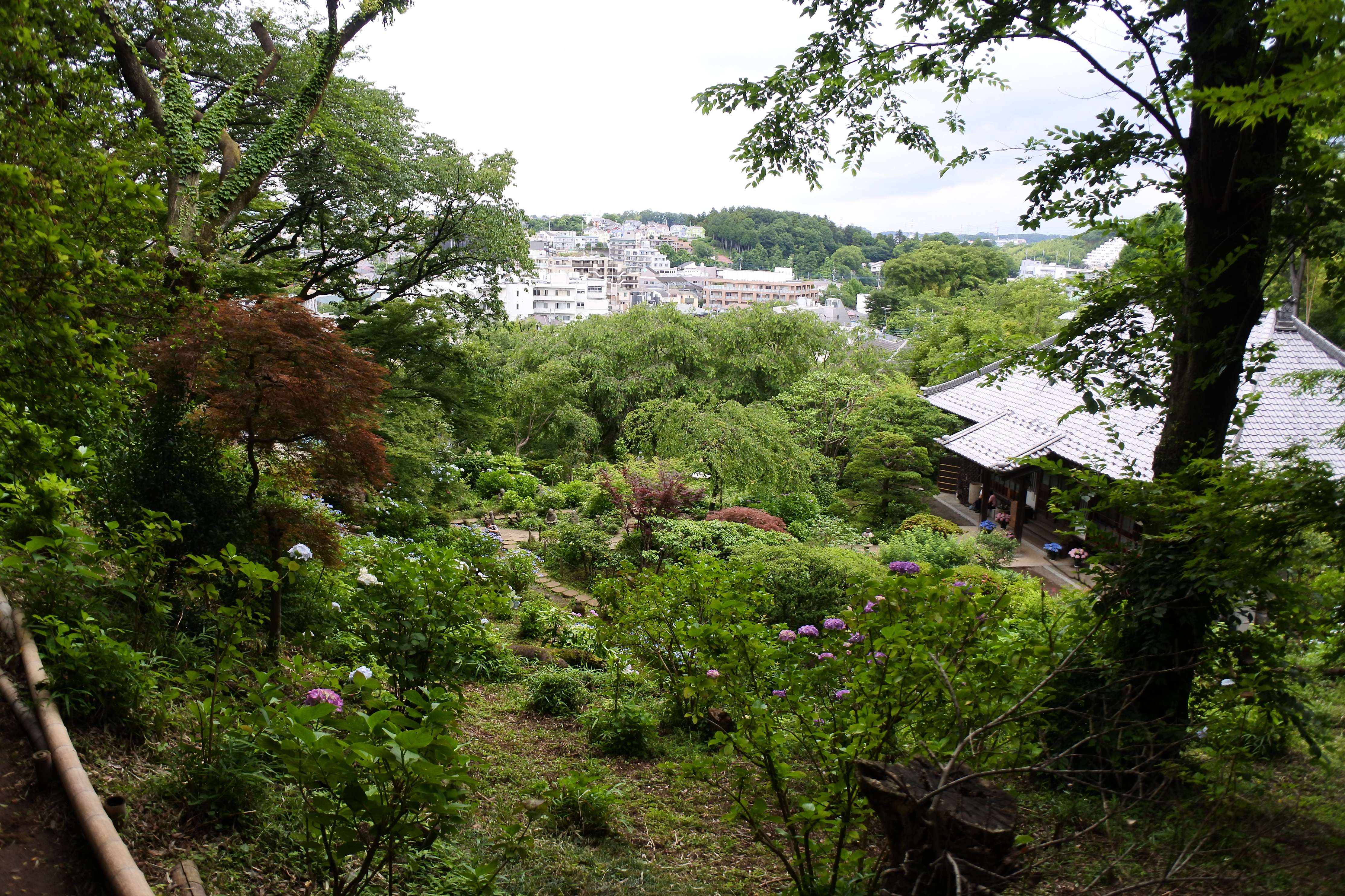 裏山を登っていると、紫陽花はもちろん、可愛らしい蛍袋、涼しげな楓の葉や竹林を見ることができます。