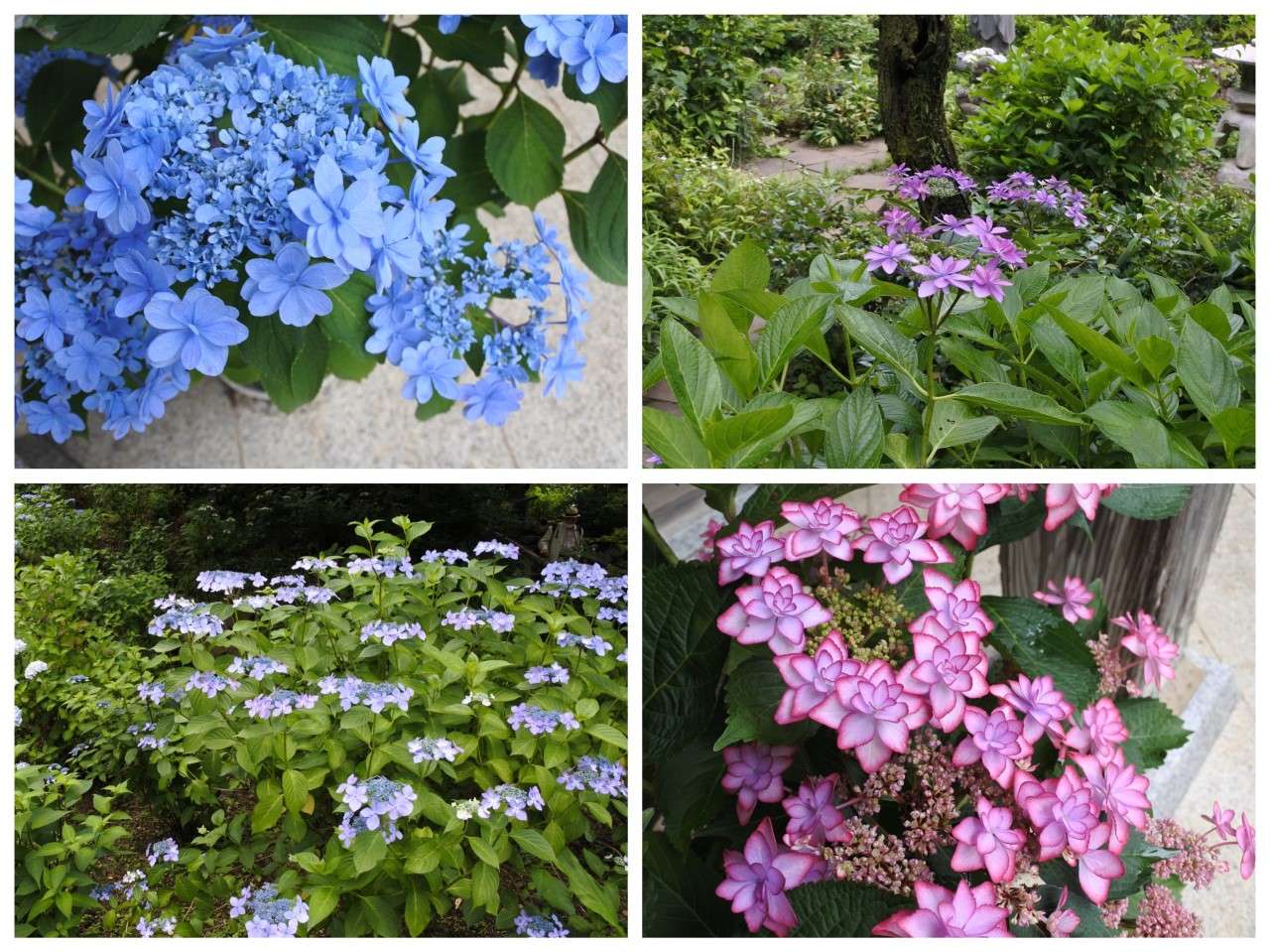 紫陽花は、淡い色から濃い色まで様々な色が咲いていて、どちらを見ても美しいです。