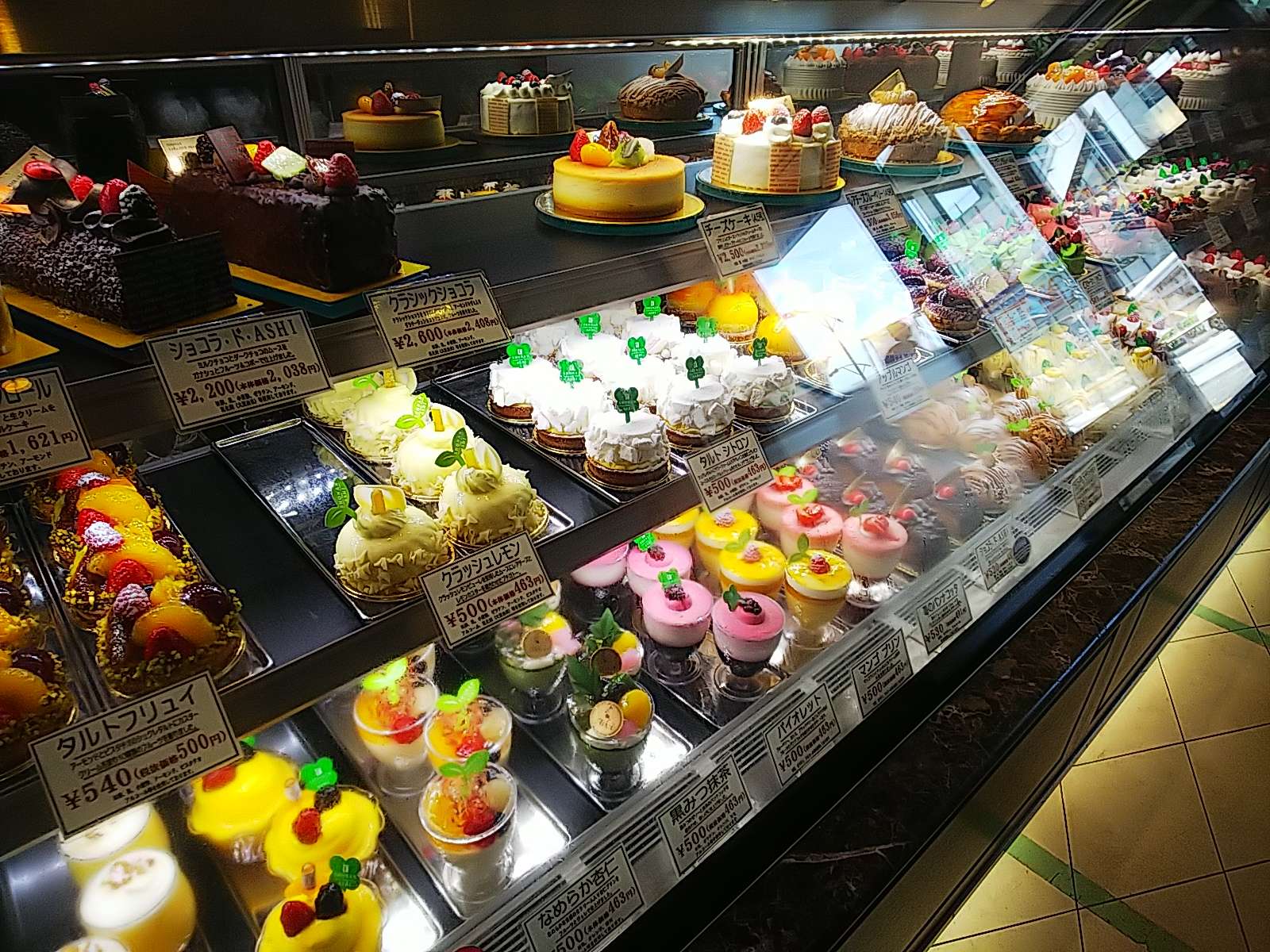 続いてケーキのショーケースには、彩り豊かなケーキがズラリと並んでます。