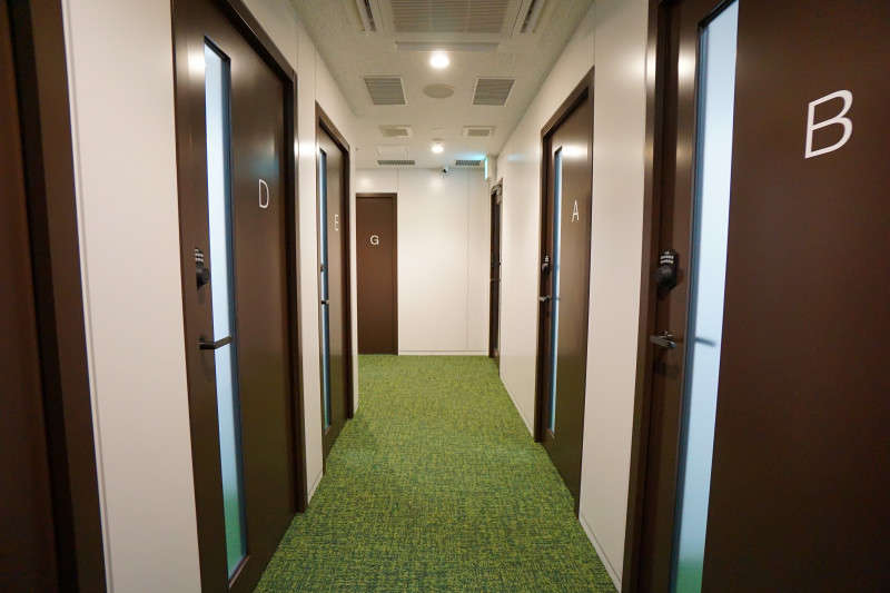 完全個室が7室と、最大21名が収容可能でプロジェクターを完備した会議室1室があります。