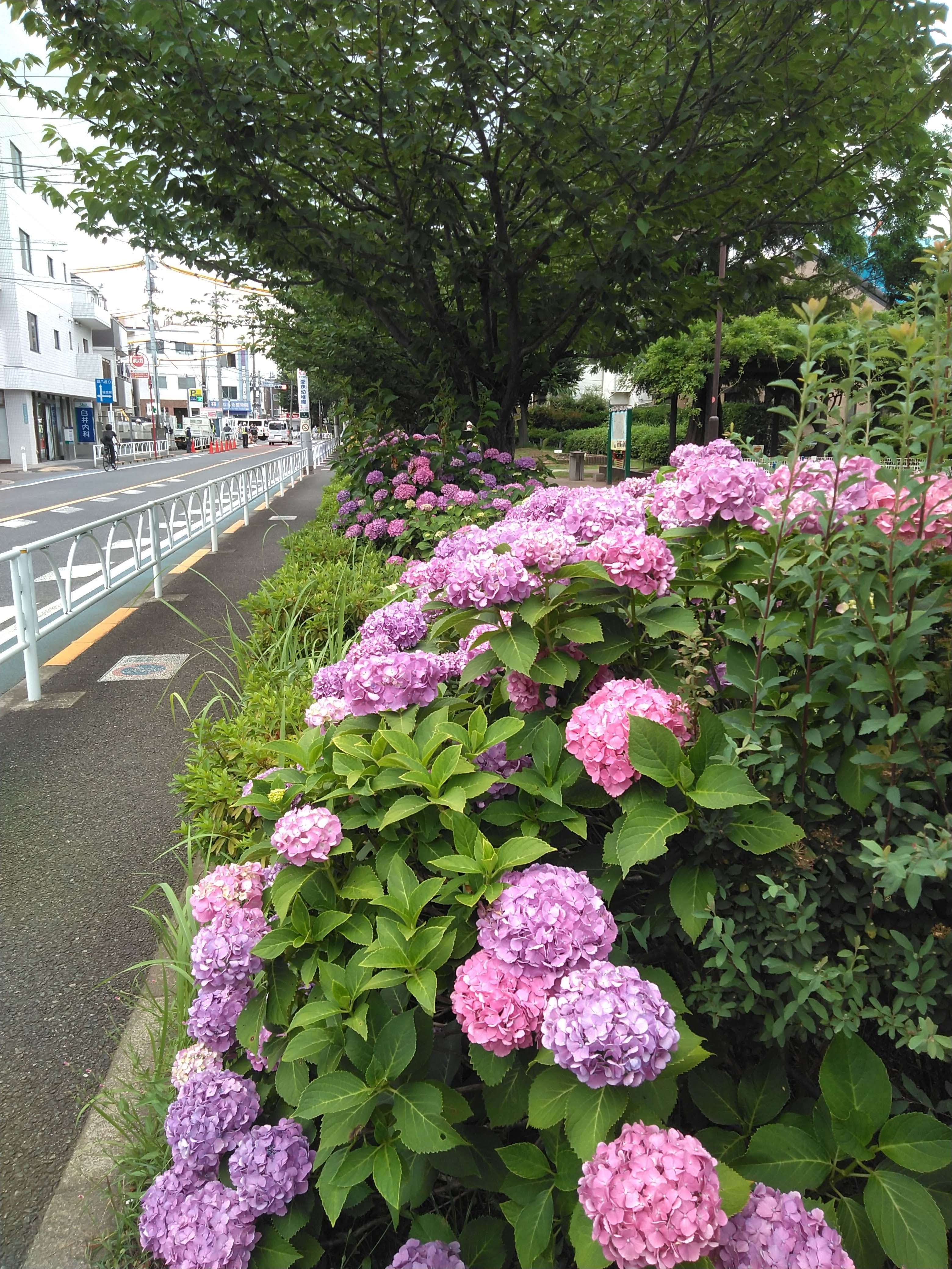 春は桜並木がきれいで、初夏はあじさいが咲き誇ります。