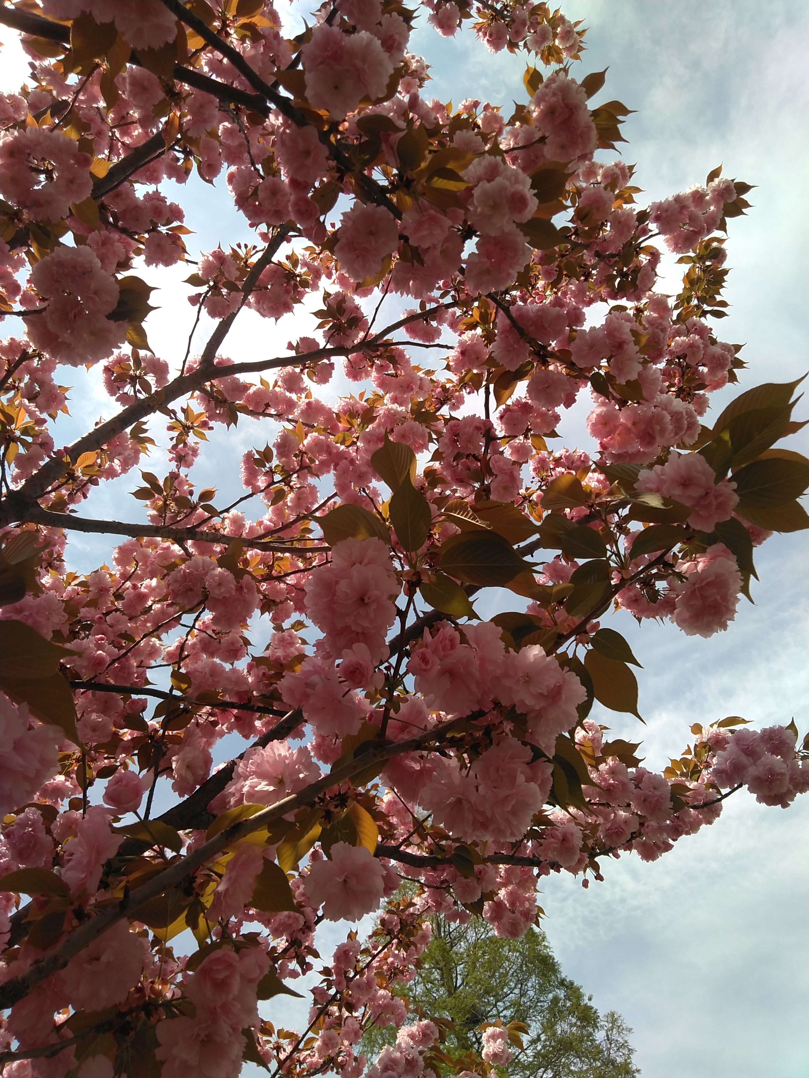 八重桜というのかボタンザクラというのか、正式な品種はわかりませんが、花の一つ一つにボリュームがあり、それほど高い木ではないので目線にたっぷりの花が見られ、春を満喫できます!