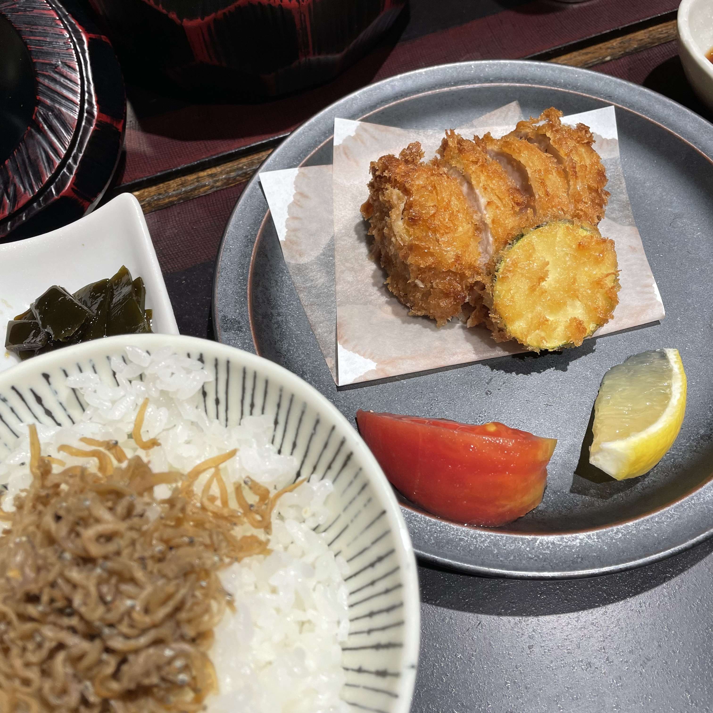 ヒレカツが大好きな私は、ヒレカツがついている一汁五菜御膳を注文しました。