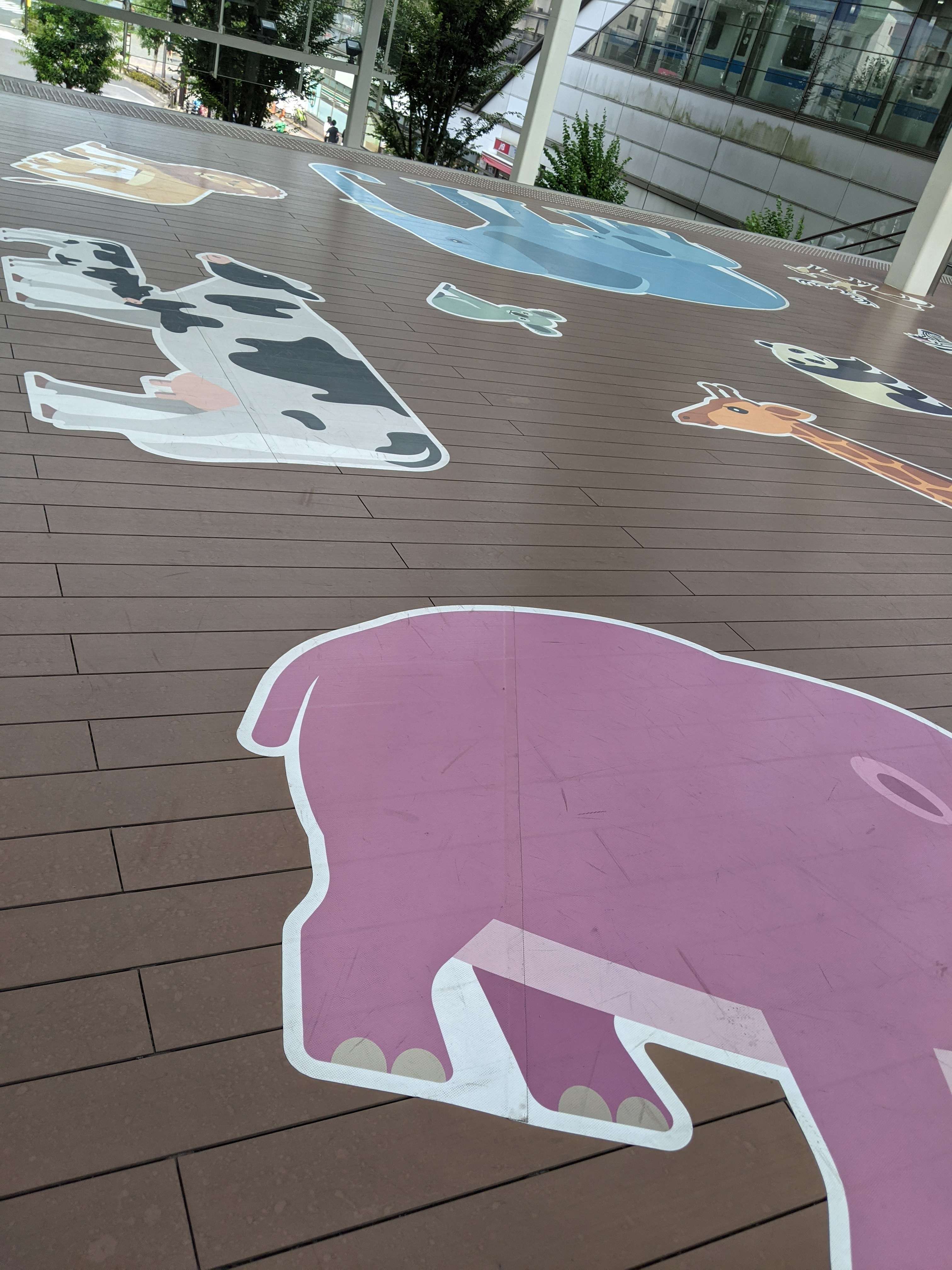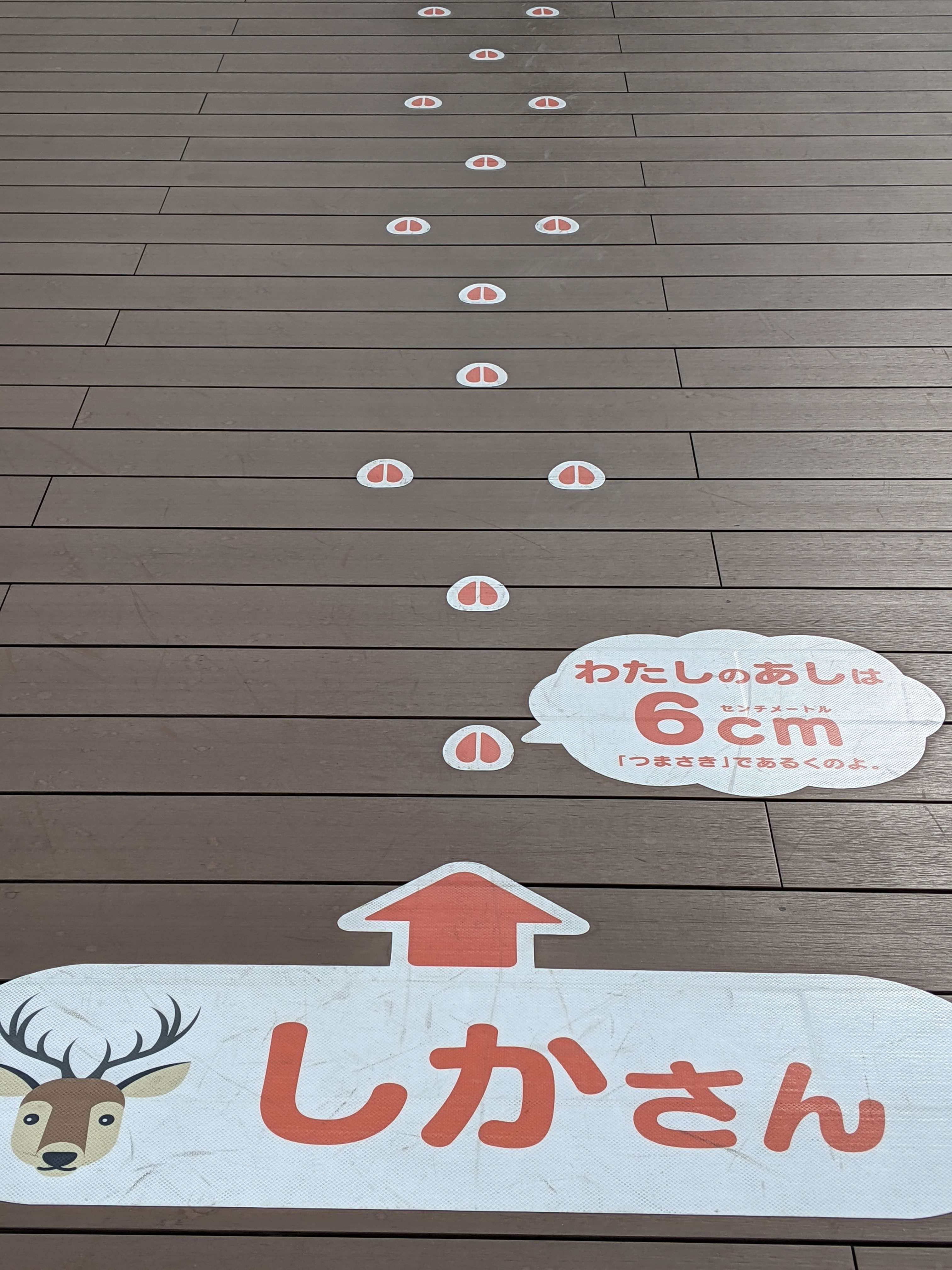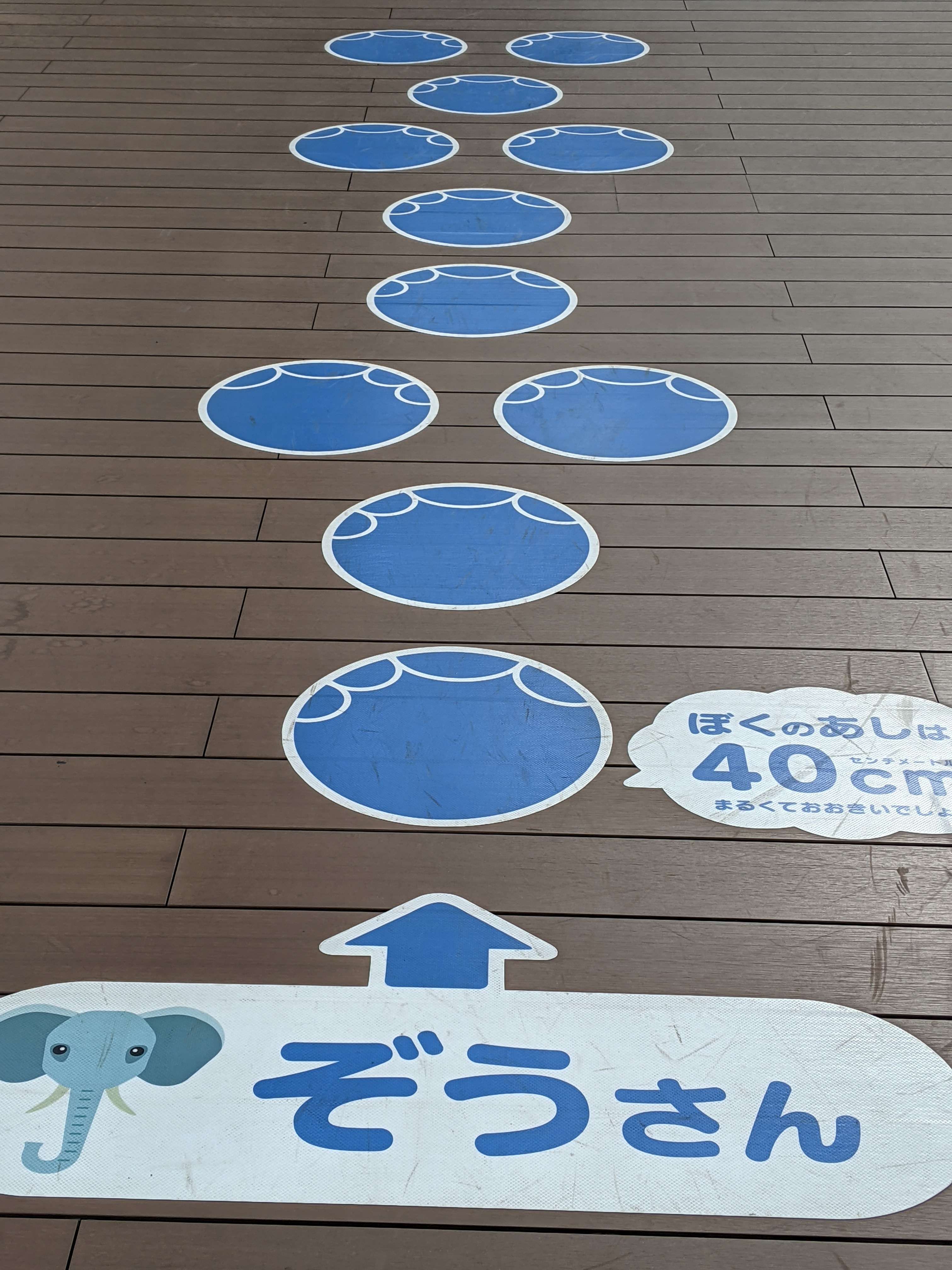 動物達の歩幅が床に貼ってあります。