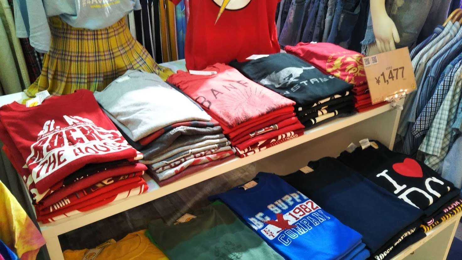 とてもカラフルな洋服の数々、40代の私にはなかなか着こなしが難しい洋服ばかりですが中には着てみたくなるような古着のTシャツも。