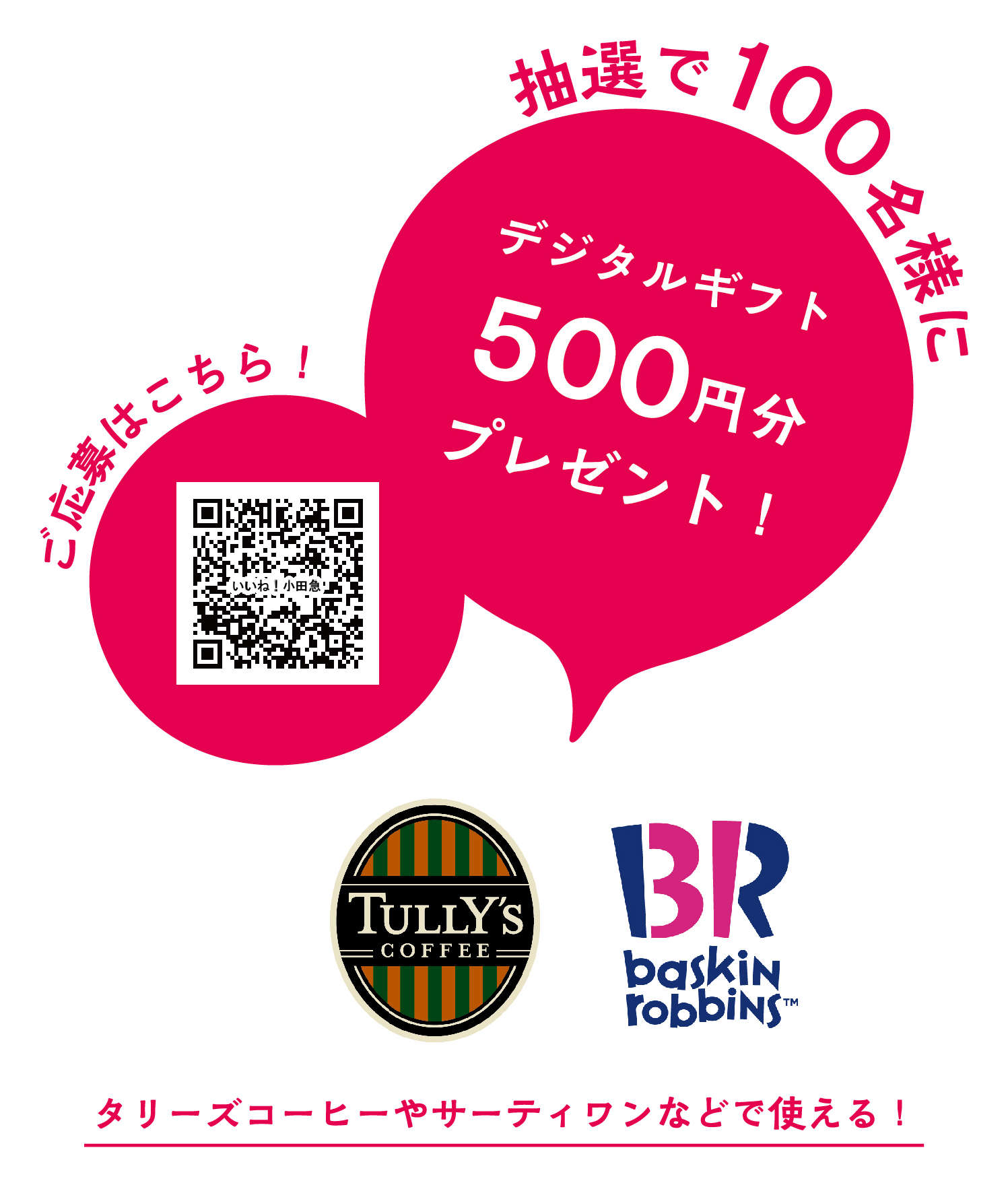 ターリーズコーヒーやサーティーワンアイスクリームなどで利用できるデジタルギフトが当たります。