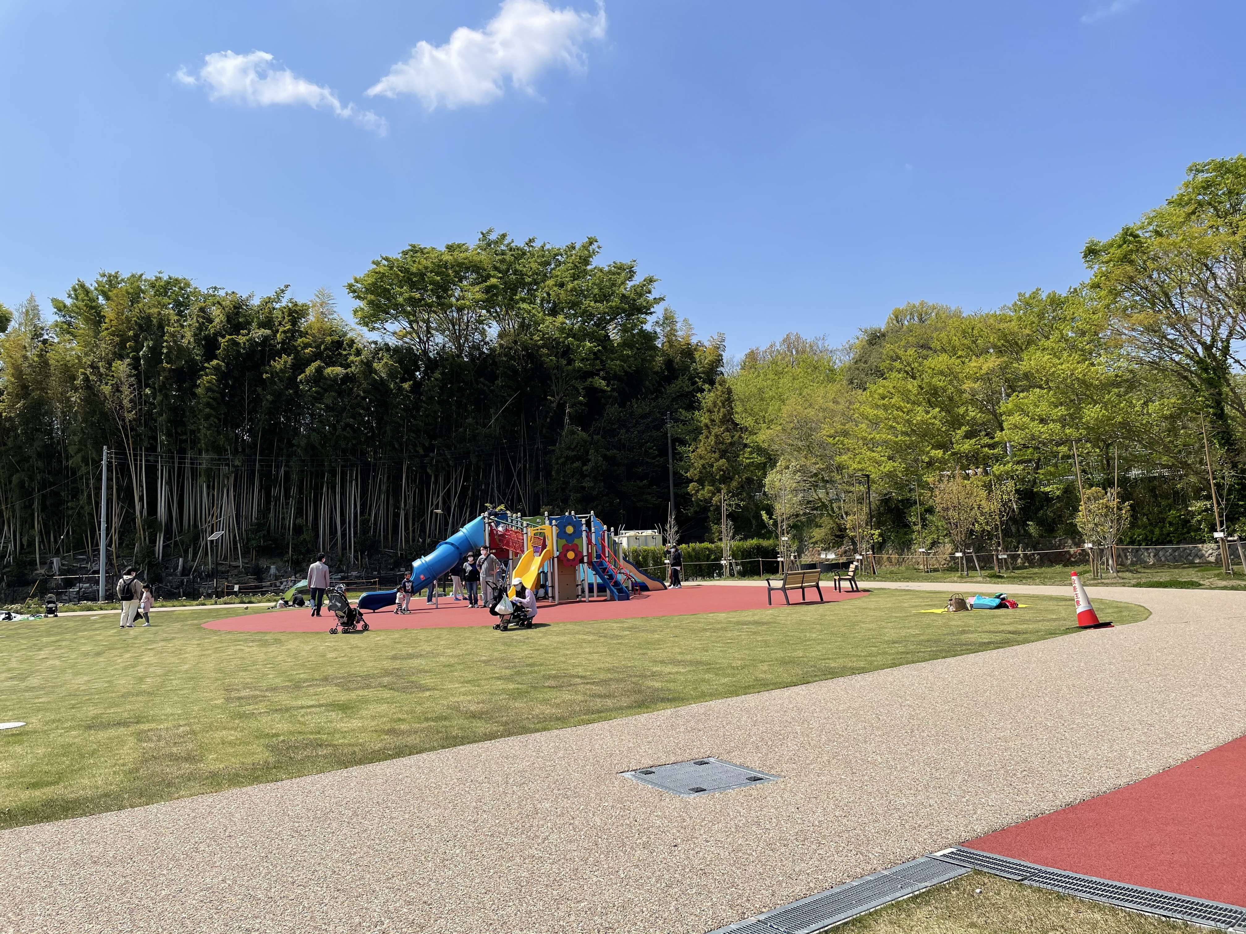 子どもに目が届く、新しくてきれいな公園でピクニック
