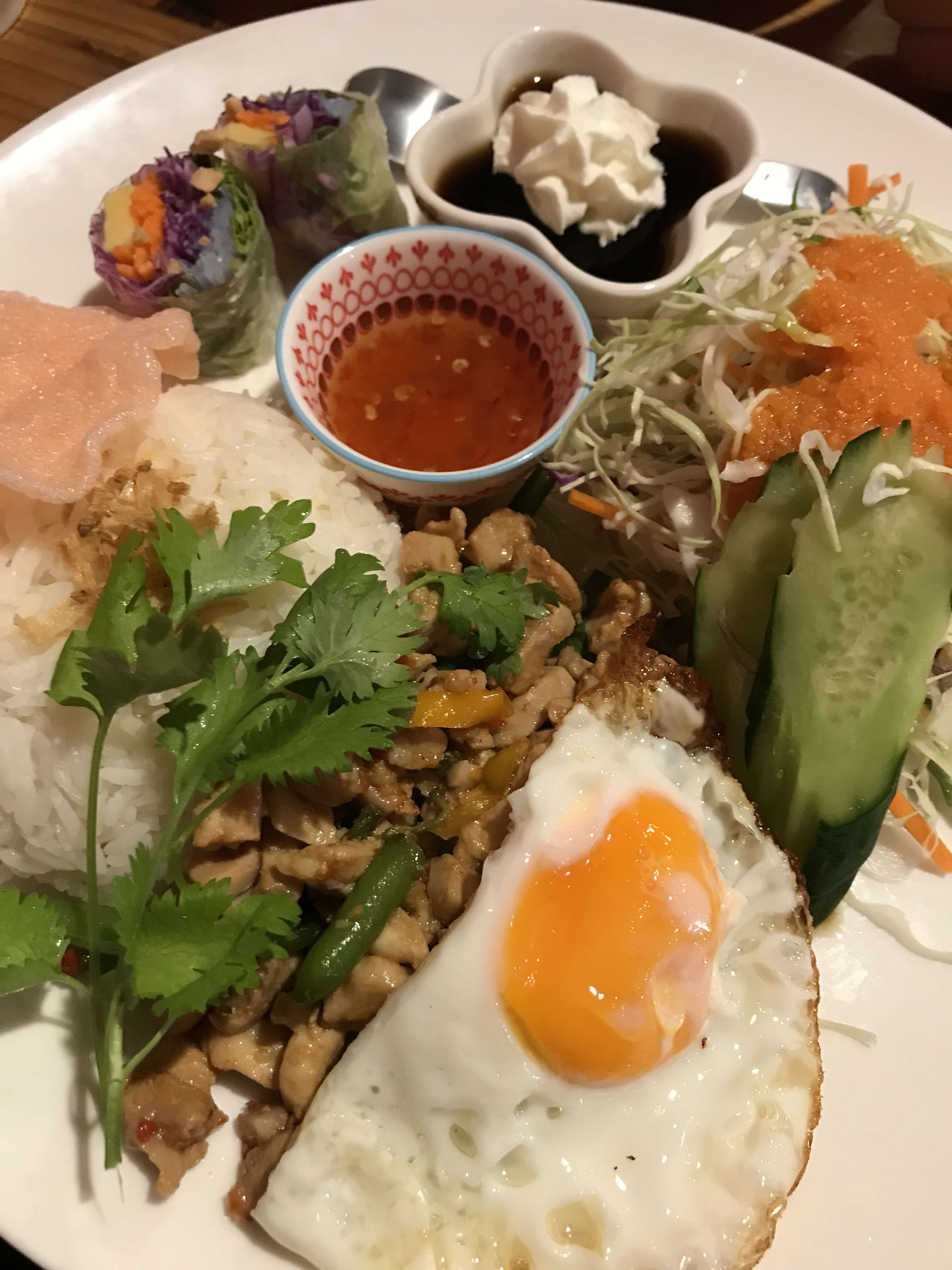 ランチはガパオライスやナシゴレン、グリーンカレー等プレート料理があります。