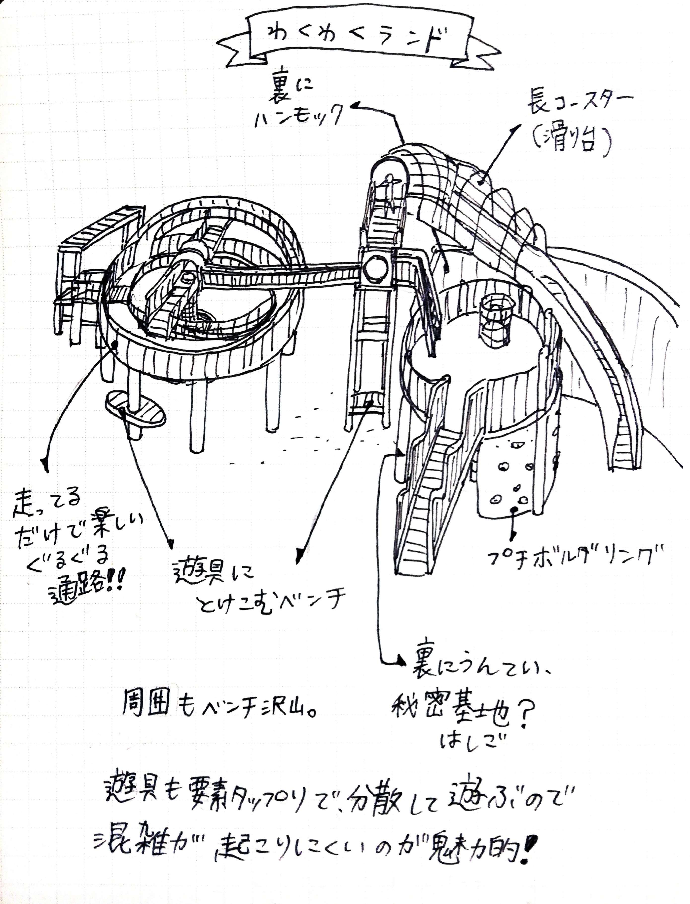 着いて驚いたのは、見るからに楽しそうな遊具「わくわくランド」。