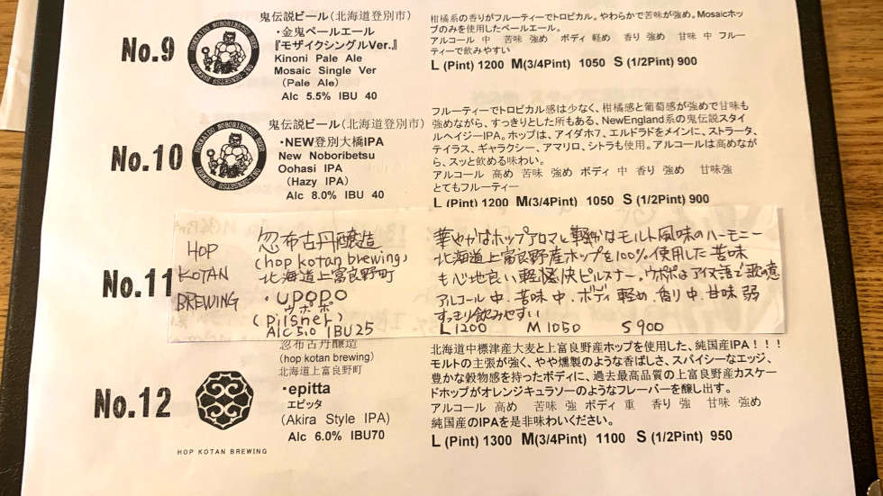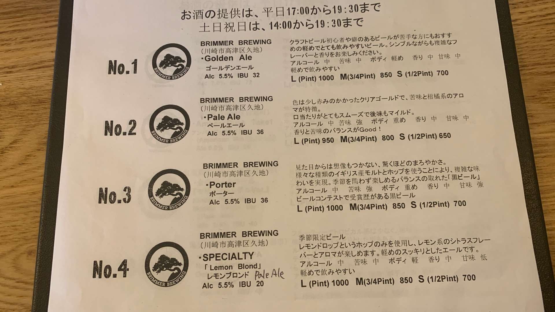 メニューの上から順に4種類×3回で全種類制覇できるなと思っていたところ、イチオシのクラフトビールがそろそろ切れそうとのことで、下から順に4種類をオススメしてもらいました。
