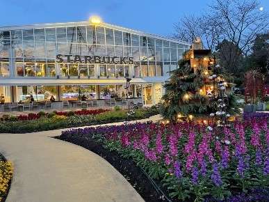 奥まで進んでいくと素敵な空間にあるスターバックスも!