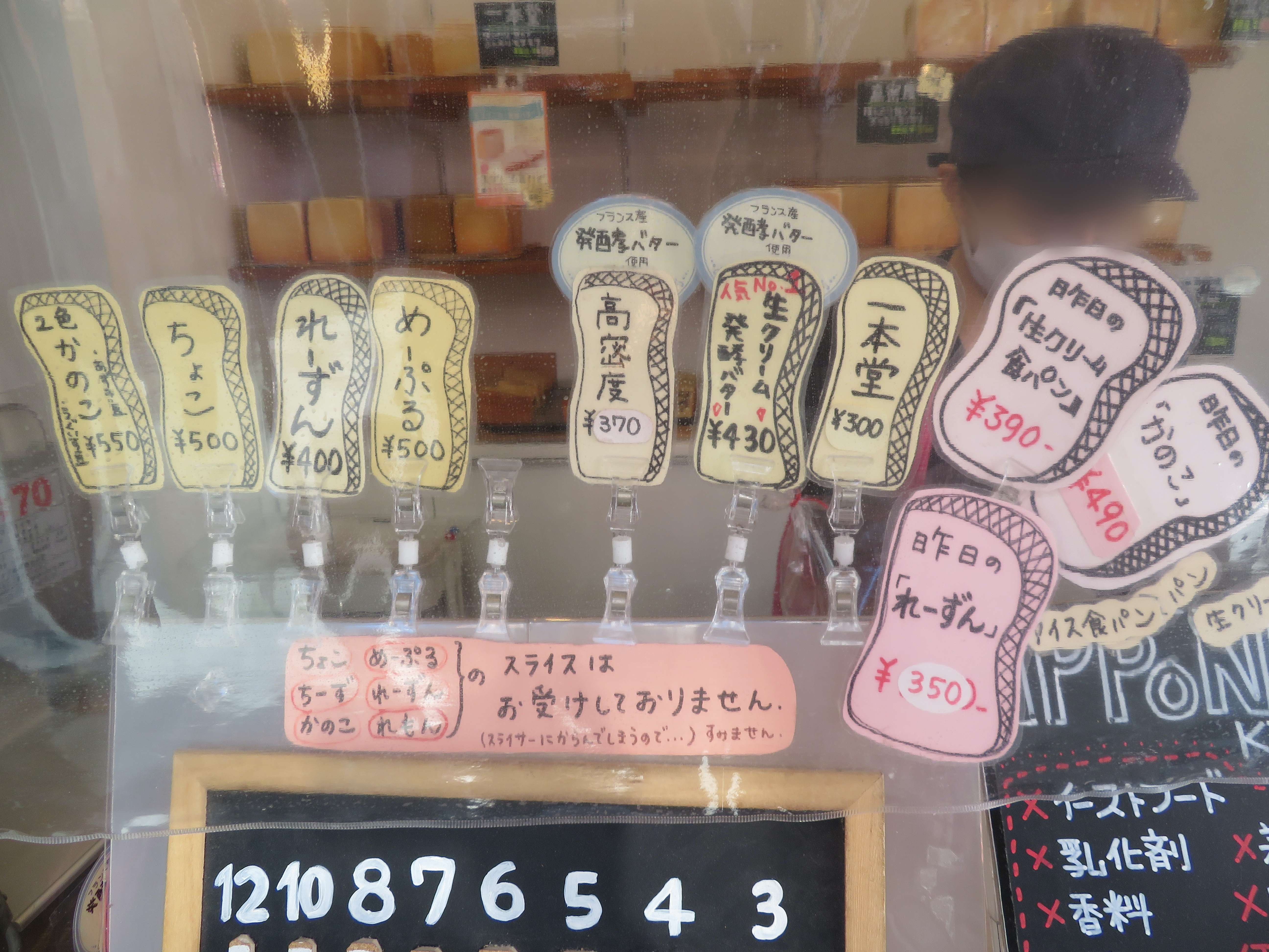 人気メニューは、シンプルな「一本堂」や「生クリーム食パン」「たっぷりレーズン」「ちーず」などのシンプルなパンです。