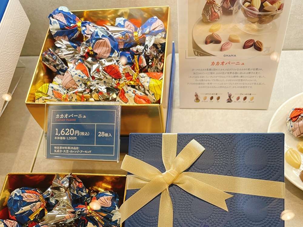 横浜発のチョコレートショップのコンセプトに合わせてカモメがシンボルになっているそうです。