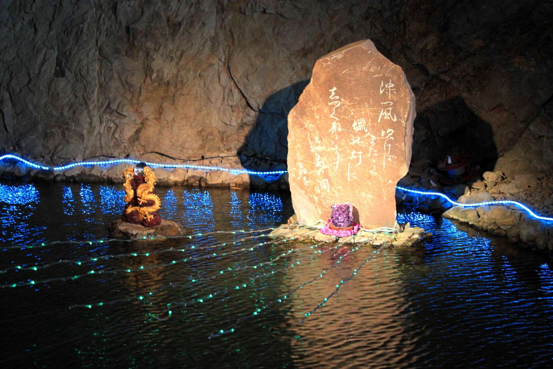 富士山の氷穴に通じているという伝説が残る「第一岩屋」と、龍神伝説の地といわれ、龍神の像が幻想的にライトアップされている「第二岩屋」から成り立っています。