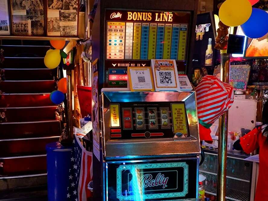 天井の高い店内には年代物のジュークボックスやスロットマシーンなど、アメリカのレトロなインテリアがたくさん置かれていて楽しいですよ!