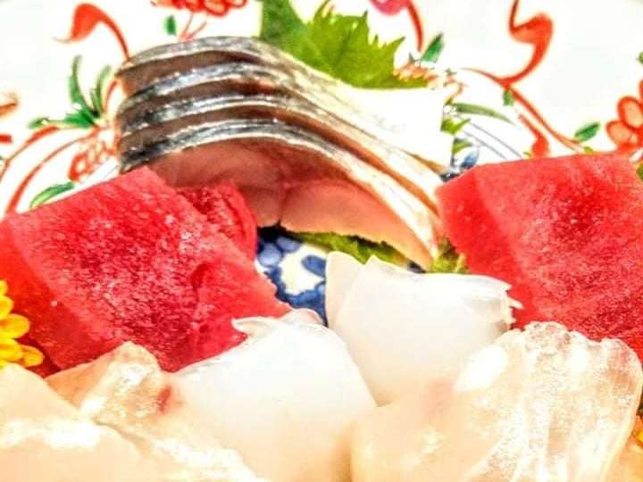 お刺身の盛り合わせの鯛の昆布〆が絶品!