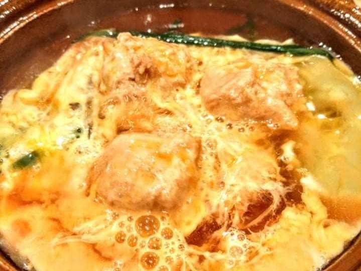小鍋はつみれがグツグツ煮えたところに卵をとろっと。