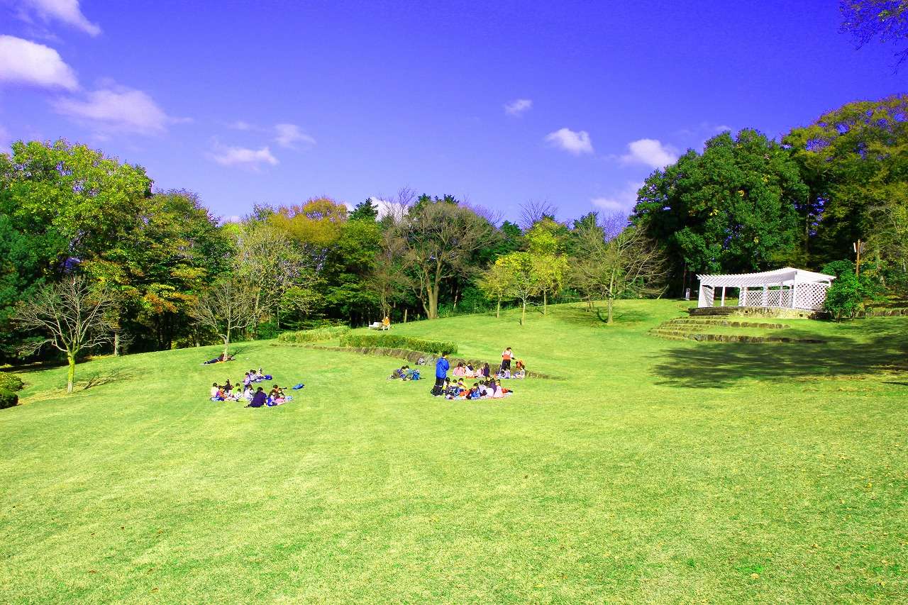 そして、公園全体のちょうど中央地点には、緑の芝生が美しい開放的な「おおやま広場」が広がります。