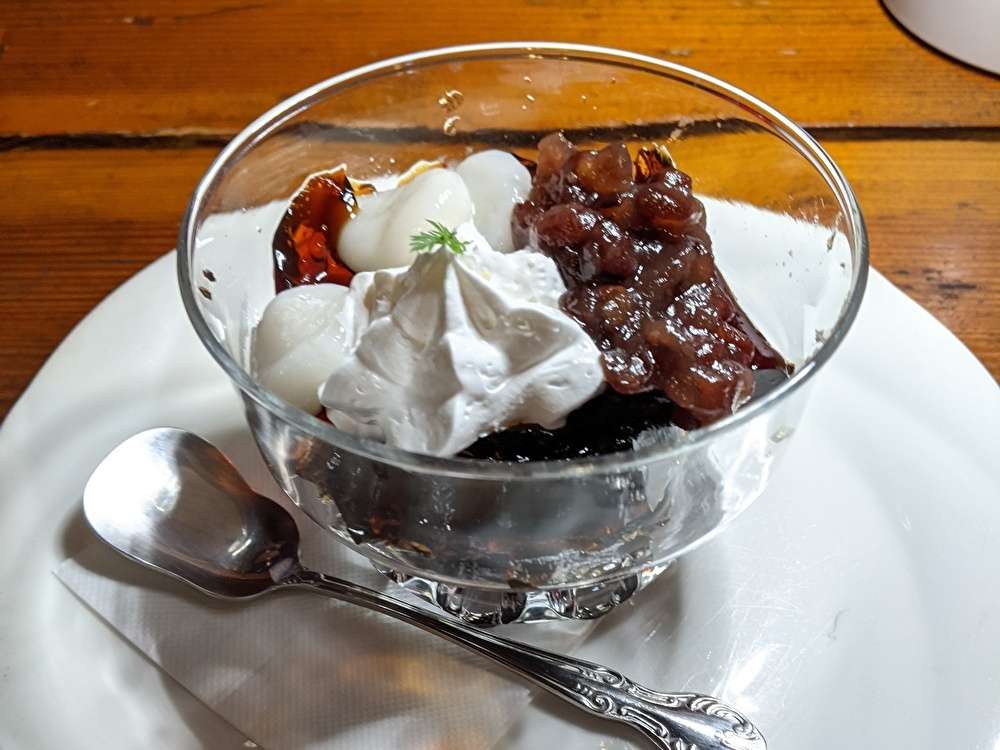 期間限定のデザートの珈琲ゼリーぜんざいは白玉も入っていて美味しかったです。