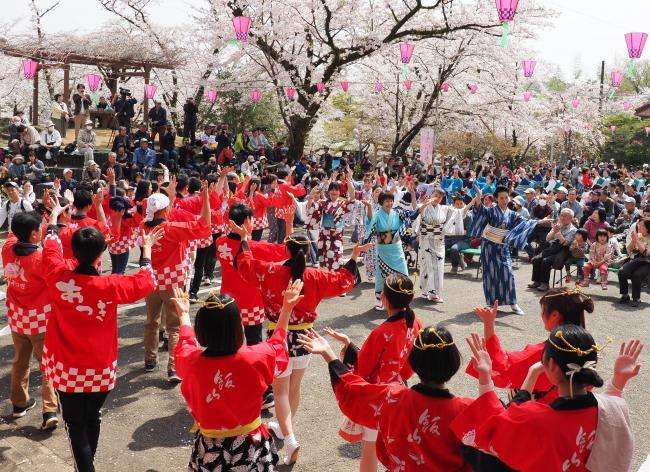 毎年恒例の「あつぎ飯山桜まつり」は、花見踊りや歌謡ショーなどで大きなにぎわいを見せます。